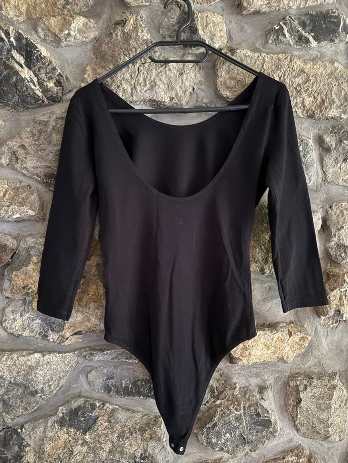 Bodies noir avec un dos nu et les manches 3/4 Fermeture boutons pression Taille S