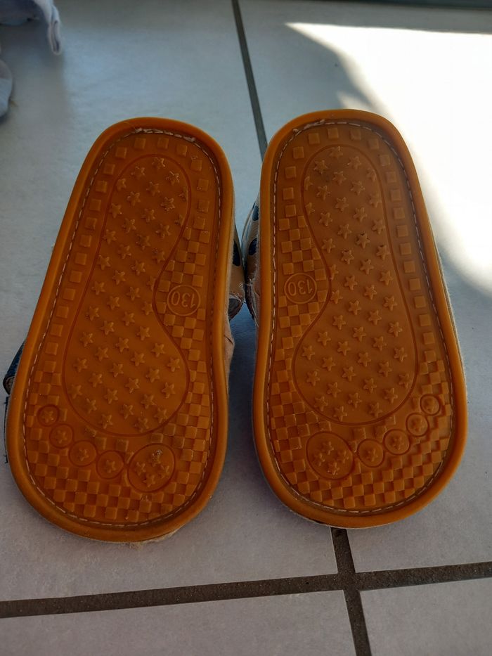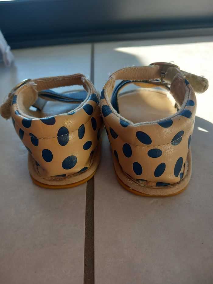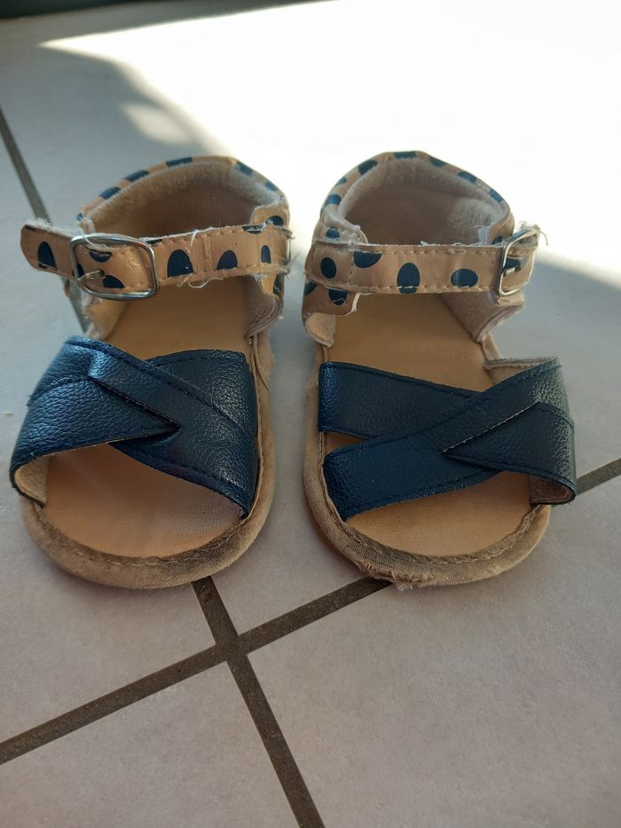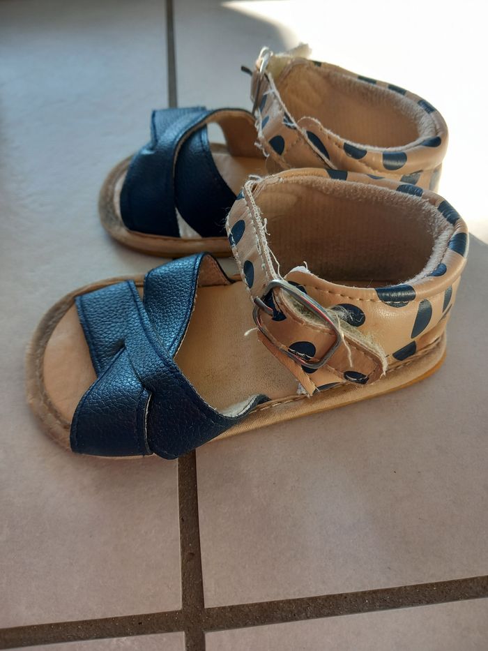 Sandales beige et bleue marine. Semelles semi rigides. Boucles avec scratch. Pointure : 19 État : très bon état
