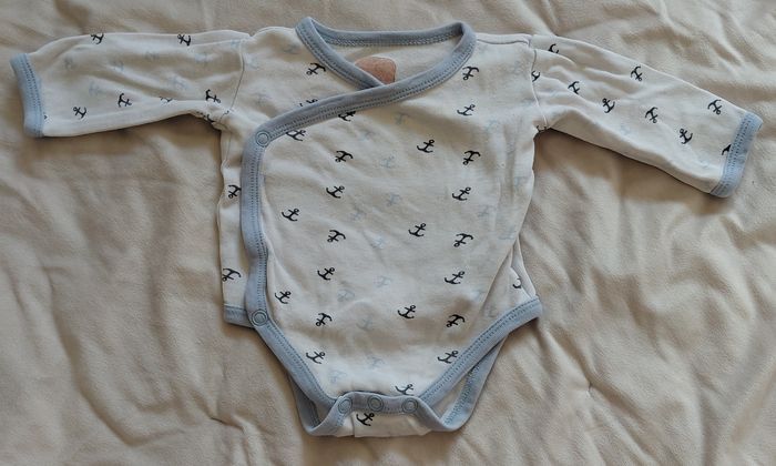 1 pyjamas 1 pièce et 1 bodie manches longues garçon prématuré en très bon état. La marque s'est effacée du bodies et 1 taches très légère sur pyjamas. -Type de produit : Pyjamas/bodies -Univers : garçon -Taille : 1 mois / 54 cm -Marque(s) : trois kilos sept -Couleur(s) : blanc, bleu claire/ciel Réductions de lots activé, jusqu'à-50%. A partir de 15€, prix négociable dans la limite du raisonnable. Envoie rapide dans les 24h ➡️ 📦
