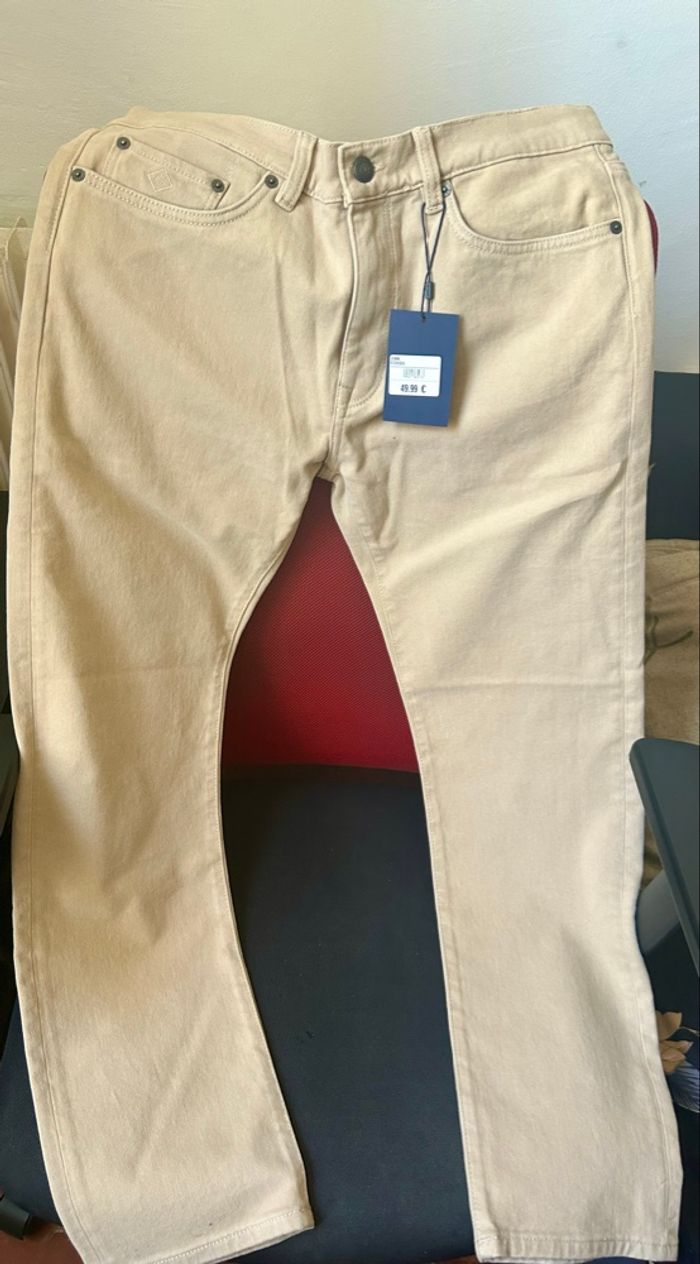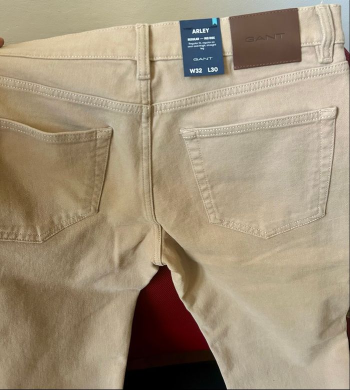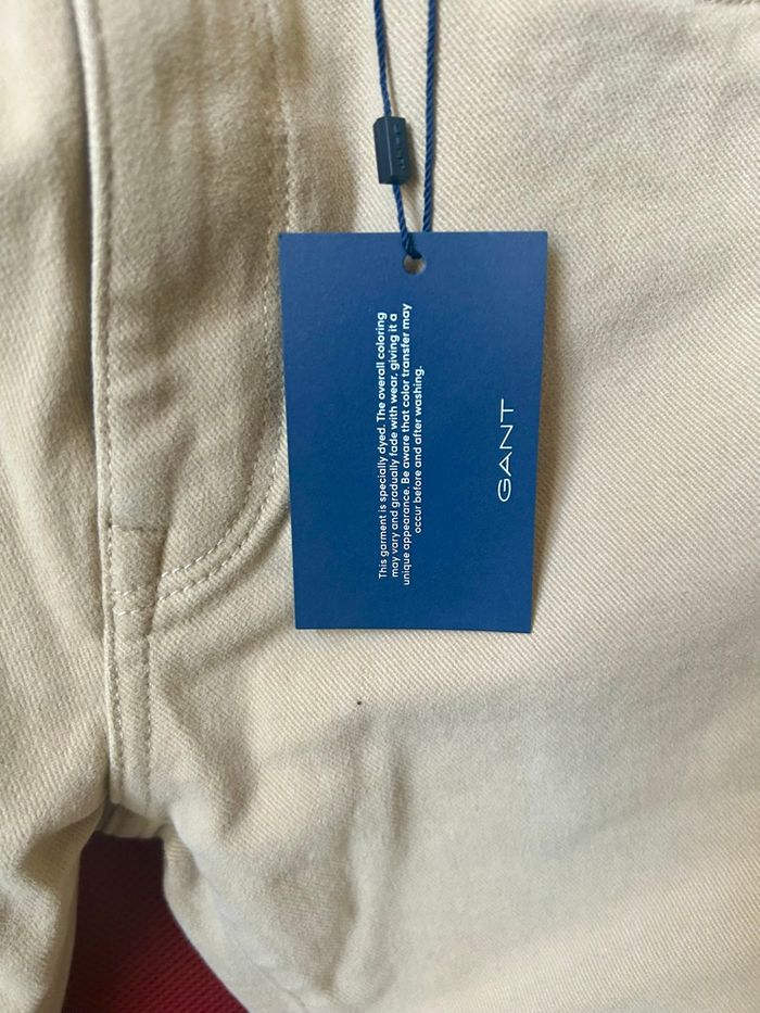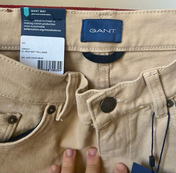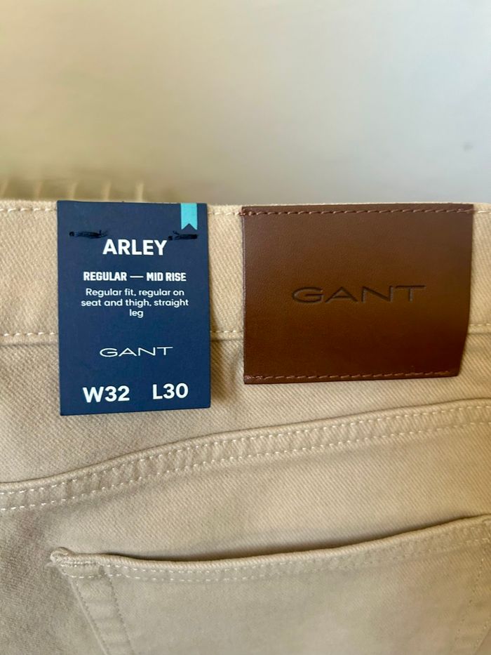 Jean Regular arley de Gant, est confectionné dans un doux mélange de coton, idéal pour être porté toute l'année. Ce jean confortable, à coupe droite et regular, est conçu pour flatter toutes les silhouettes, neuf, couleur Beige