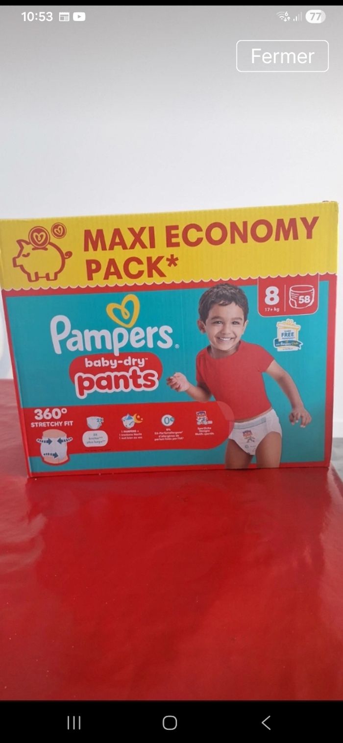 Bonjour Je vend un paquet de couches pampers Taille 8 pantsneuf Plus de 27kg