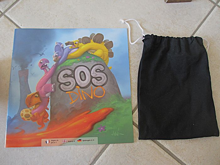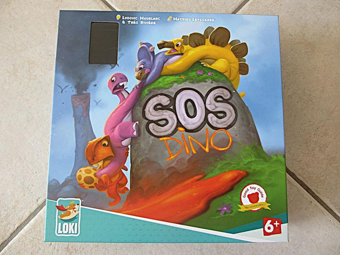 Jeu SOS Dino - Loki Dès 6 ans. Jeu de réflexion, d’anticipation et d’esprit d’équipe pour sauver les 4 Dinos. Piochez une tuile, posez-la sur le plateau et avancer ensuite un des Dino pour le mettre en sécurité sur les montagnes. Attention à la lave et aux chutes de météorites ! Etat neuf.