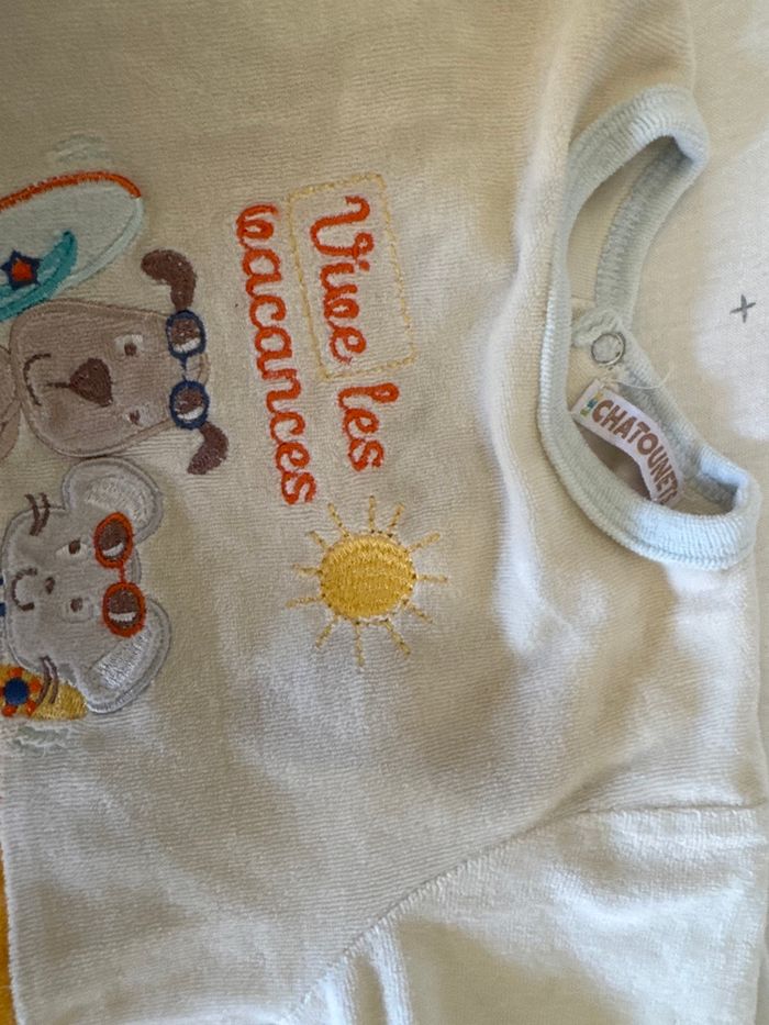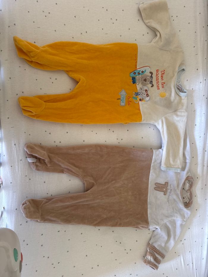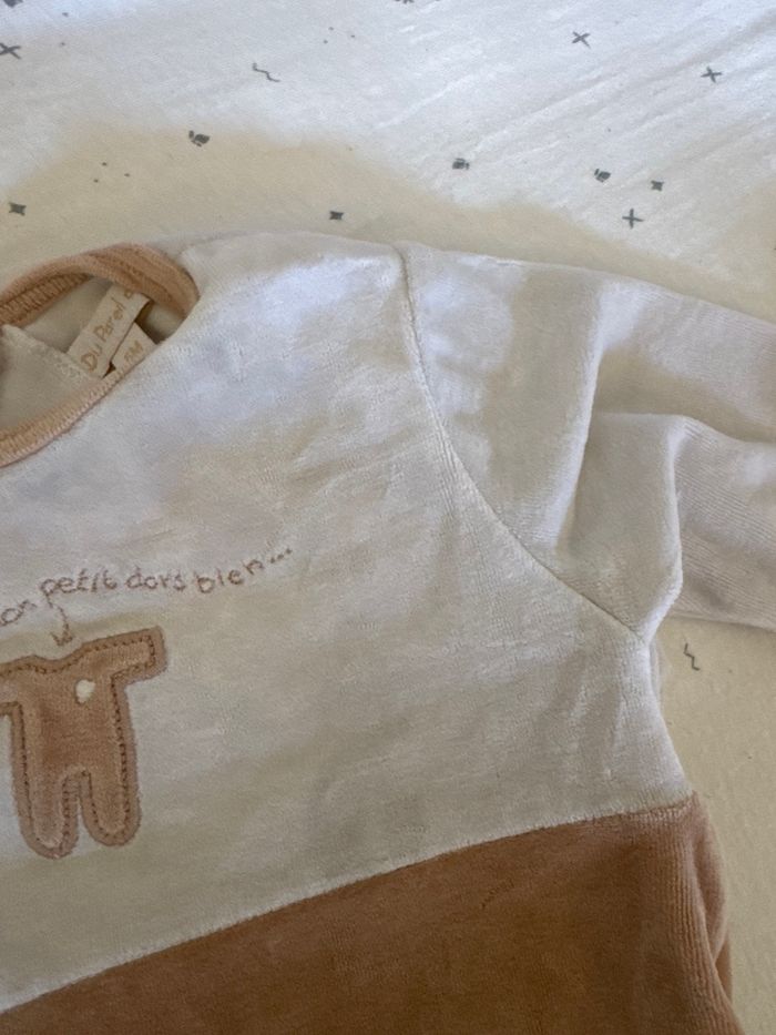 Pyjamas en velours Ont été portés, quelques taches sombres sur la partie blanche des deux pyjamas Marques Du Pareil au Même et les Chatounets