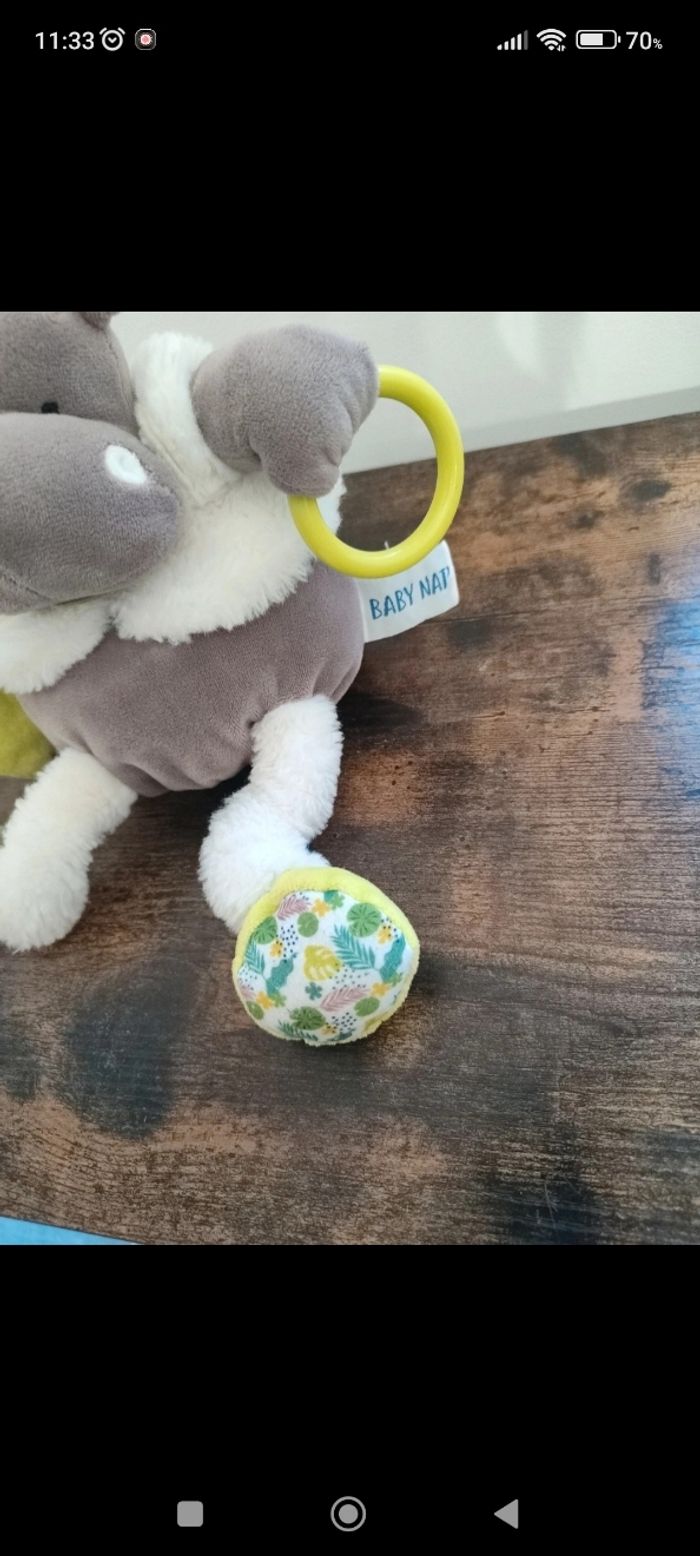 Peluche d’éveil bébé toute douce – Baby Nat Jolie peluche d’éveil pour bébé, très douce et agréable au toucher. Idéale pour stimuler les sens de bébé grâce à ses différentes textures et petits éléments à manipuler. ✔ Maison non-fumeur Convient dès le plus jeune âge.