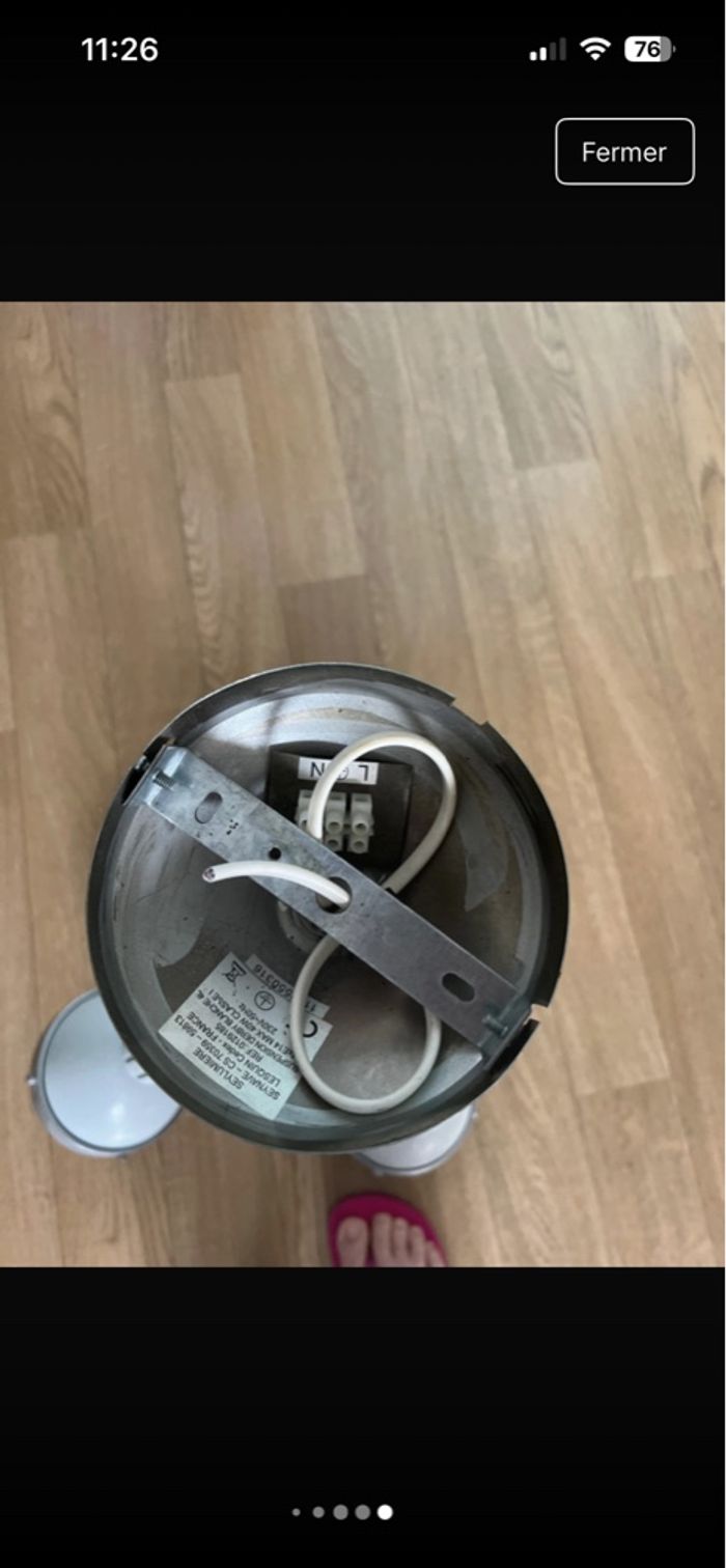 Vend lustre blanc et chromé avec cloche directionnel en très bon état