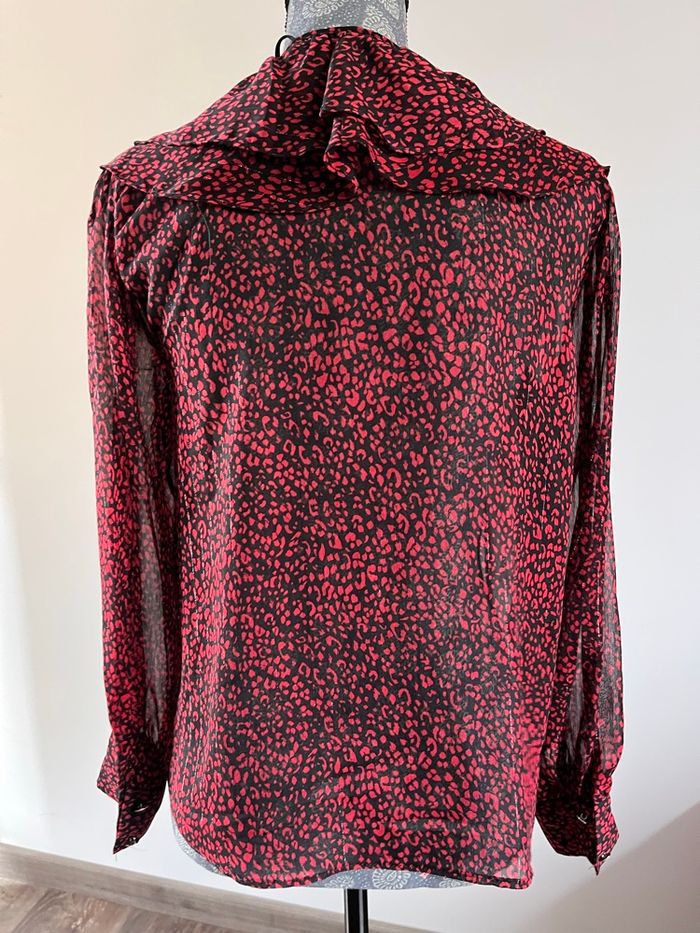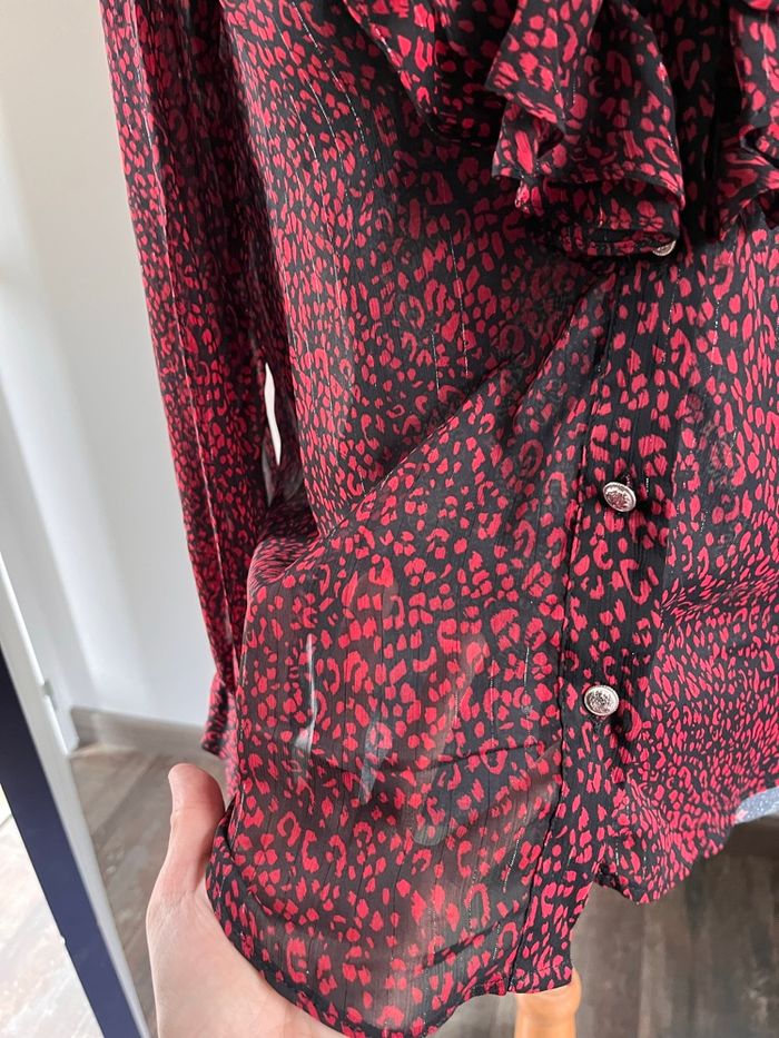 Blouse rouge et noir Zara Avec des volants sur le décolleté Légèrement transparente Taille S En très bon état