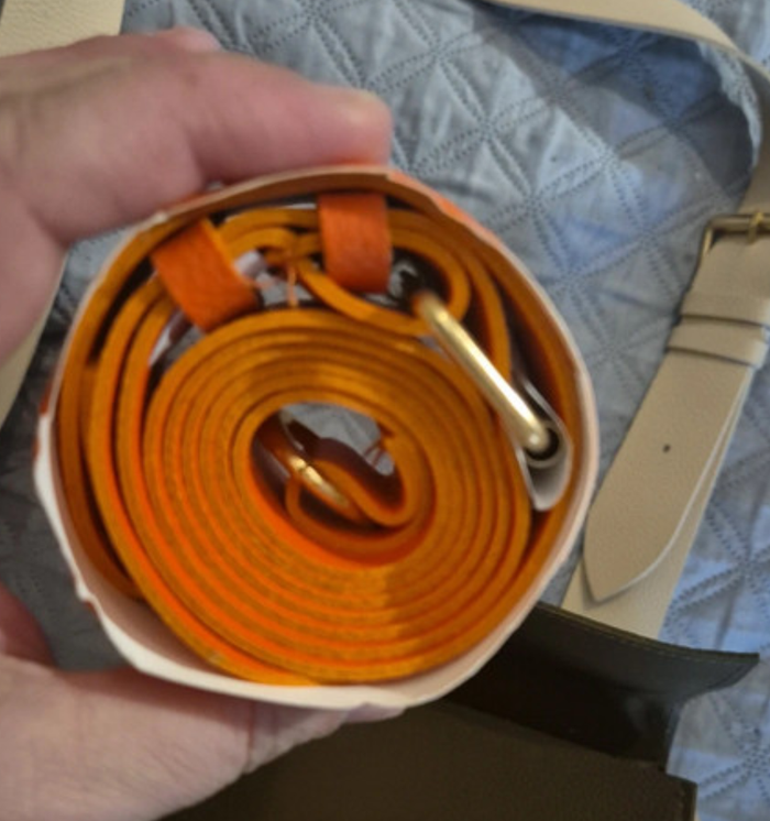 Peti sac a main avec lanière interchangeable Une lanière écru une orange Jamais utiliser juste débaler