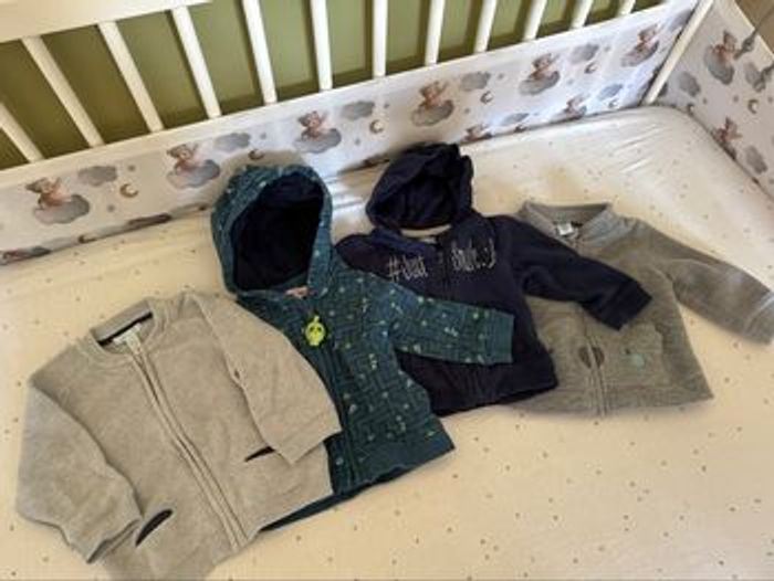 Tous les quatre en bon état voire très bon état La polaire koala est en 9 mois mais elle taille grand Les 3 autres sont en 12 mois