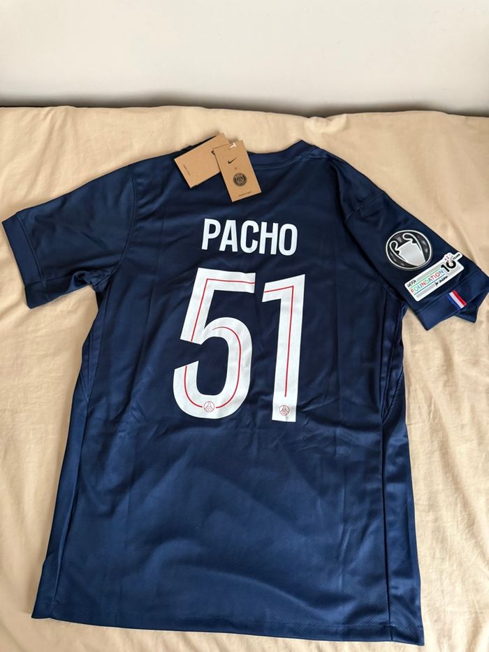 Maillot PSG 2025/2026 Willian Pacho Badge UEFA Taille S Maillot PSG 2025/2026 – Domicile ⭐ Flocage Willian Pacho n°51 ⭐ Badge Ligue des Champions + UEFA Foundation 10 ans ⭐ Étoile LDC floquée 📦 Jamais porté, encore sous emballage 📌 Taille : S 📌 Saison : 2025/2026