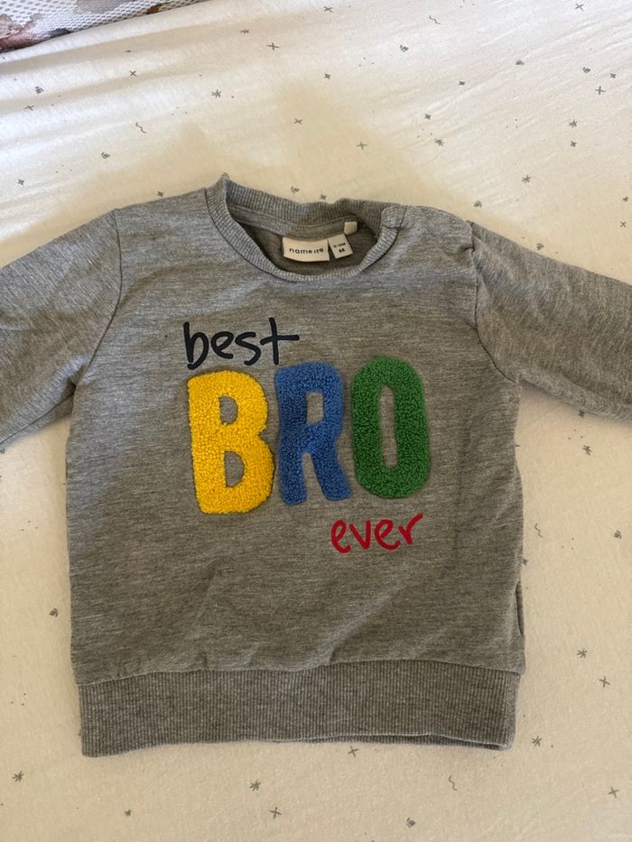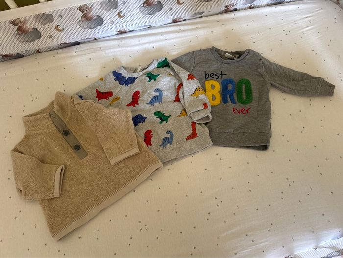 En très bon état pour les deux gris Le beige est en état satisfaisant Le pull « best bro » est en taille 4-6 mois, les deux autres en taille 6 mois