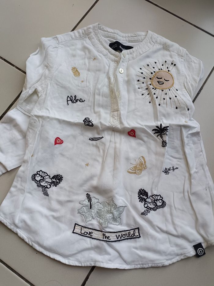 Lot 6 ans fille 19 pièces toutes marques 30 euros 5 robes ( la Rose est légèrement tachée voir photo) dadati, mango, C&A,kid's graffiti  2 jupes Tao tissaia  1 jean 1 sous pull Un legging  Un maillot manches longues tao Pull col roulé mango Chemise Desigual  2 tee shirts 2 gilets orchestra,C&A Veste gilet tao Un pyjama taché voir photo absorba