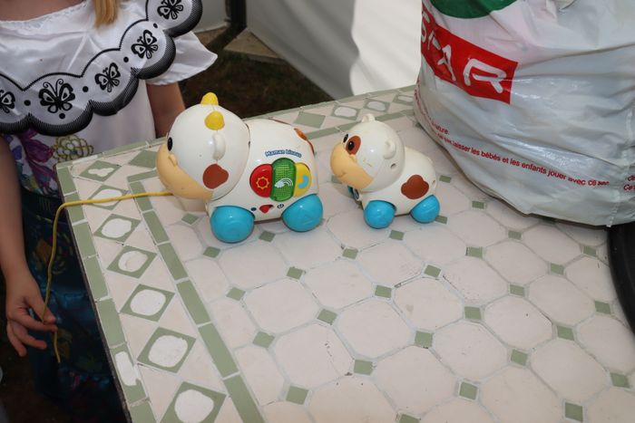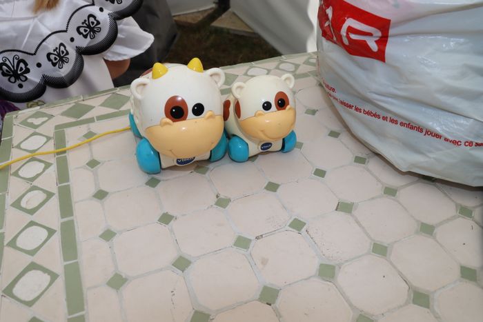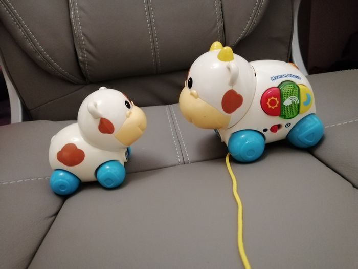 Jouet maman et bébé vache trop mignon Malheureusement ils ont jaunit au fil du temps mais ils fonctionnent encore extrêmement bien Bien regarder les photos, vous acheté ce que vous voyez. N'hésitez pas à en re demander si besoin. Je fais des prix de lots également si çà reste dans un prix raisonnable bien entendu.