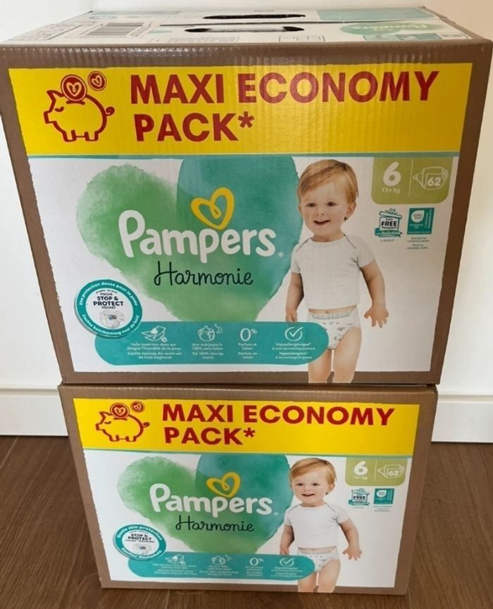 Pampers harmonie taille 6 Les cartons seront enlevés pour l envoi pour réduire la taille des colis (envoi en locker). Les paquets de couches seront bien emballés/ protégés