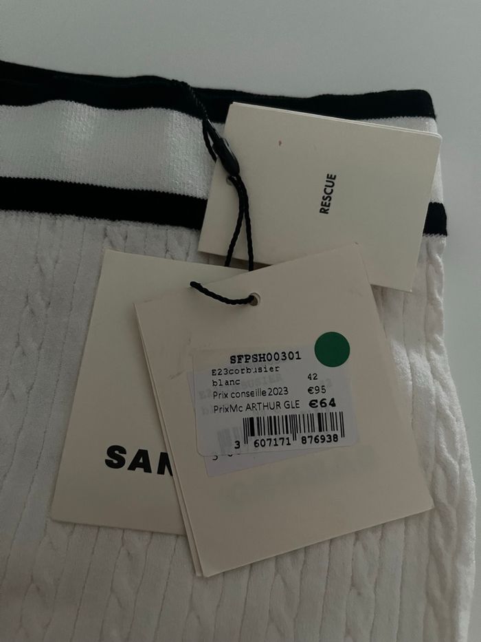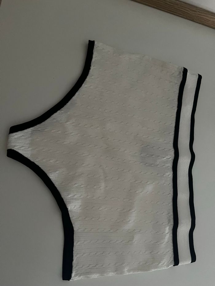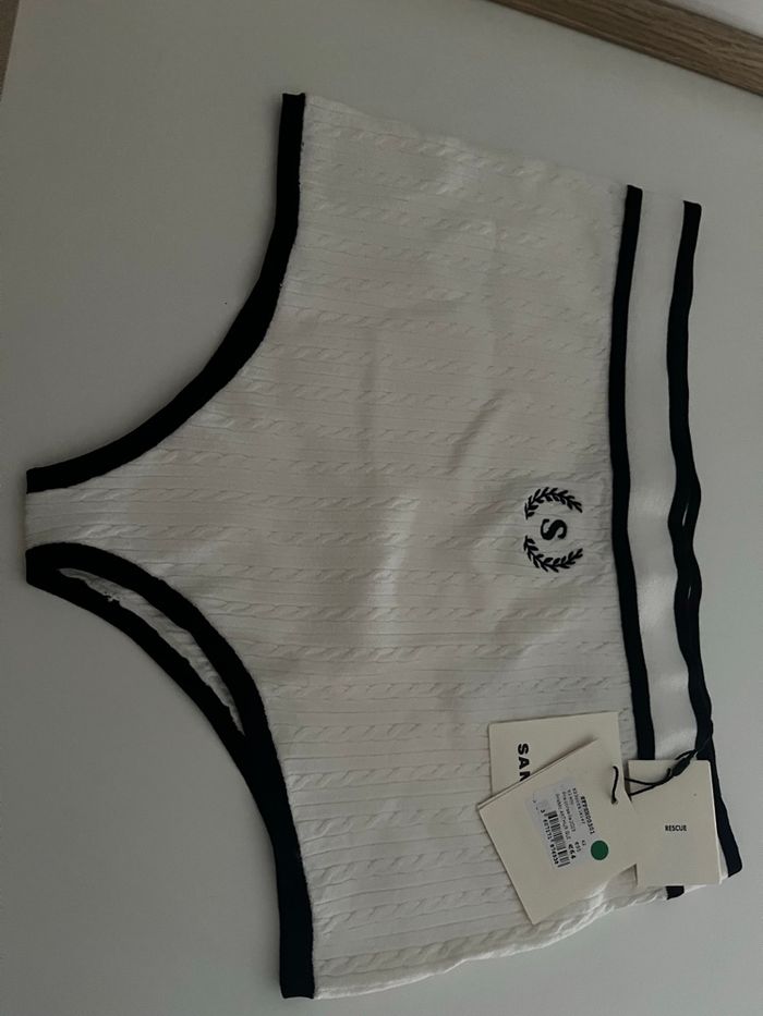 Shorty sandro neuf avec étiquette + sac Blanc et détails noirs Envoie le jour même ou lendemain selon le transporteur choisi Prix négociable / envoie en 48h max