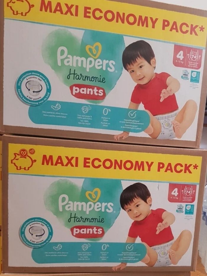 Pampers harmonie pants taille 4 Les cartons seront enlevés pour l envoi pour réduire la taille des colis (envoi en locker). Les paquets de couches seront bien emballés/ protégés