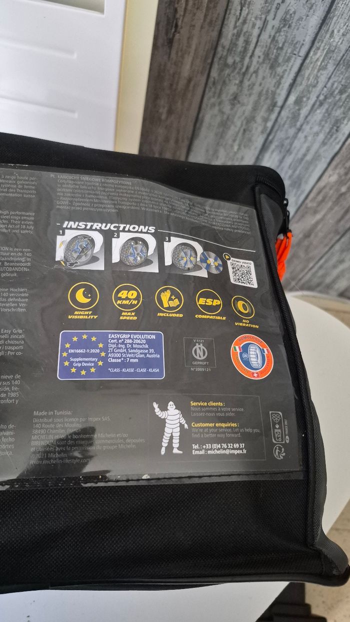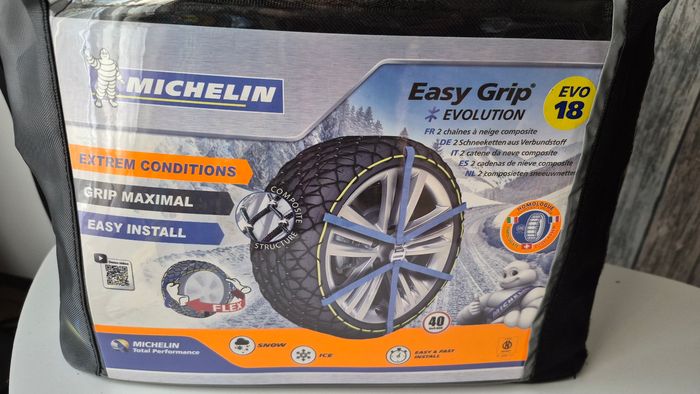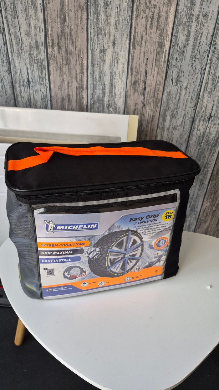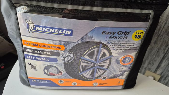Chaînes neige MICHELIN Easy Grip Evolution EVO 18 – Très bon état ❄️🚗 Chaînes neige MICHELIN Easy Grip Evolution EVO 18, idéales pour une conduite sécurisée en conditions hivernales. Conçues pour offrir une adhérence maximale sur neige et verglas, avec une installation rapide et facile. Caractéristiques : Marque : Michelin Modèle : Easy Grip Evolution – EVO 18 Très bon état Excellente tenue de route Montage simple et rapide Compatibles ESP / ABS Vitesse maximale : 40 km/h Livrées dans leur sac de transport d’origine Parfaites pour rouler en toute sérénité en hiver ❄️