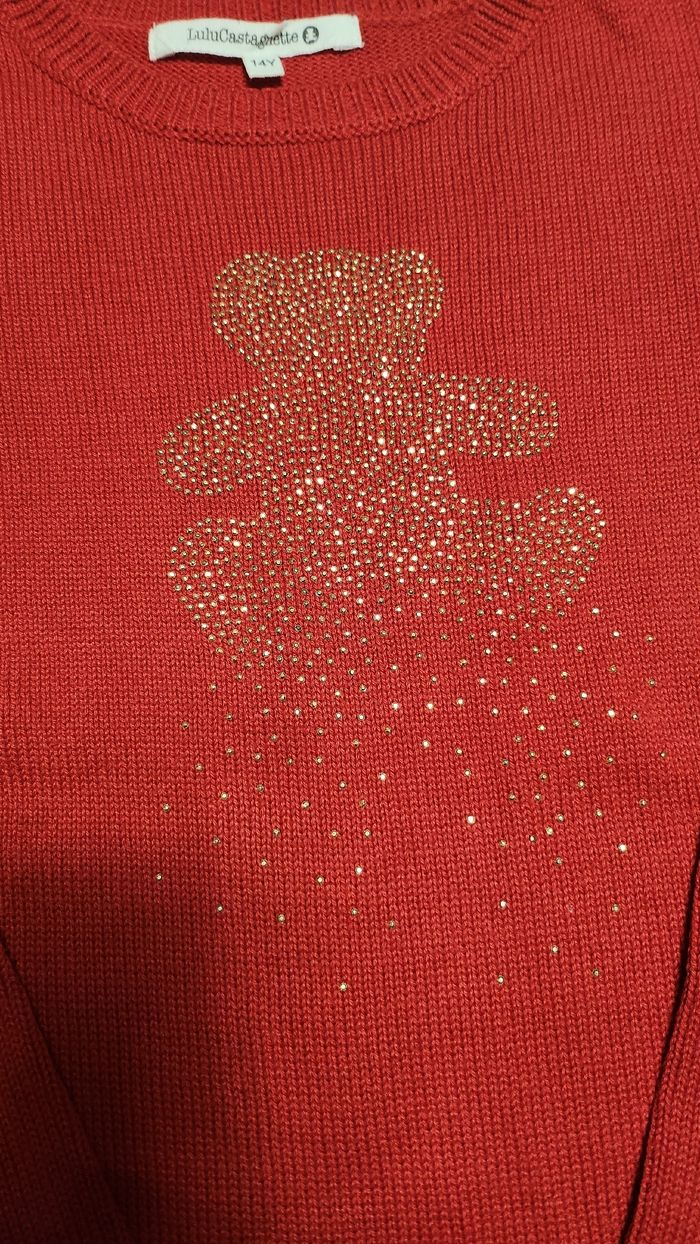 Pull rouge Lulu Castagnette avec motif doré - photo numéro 2