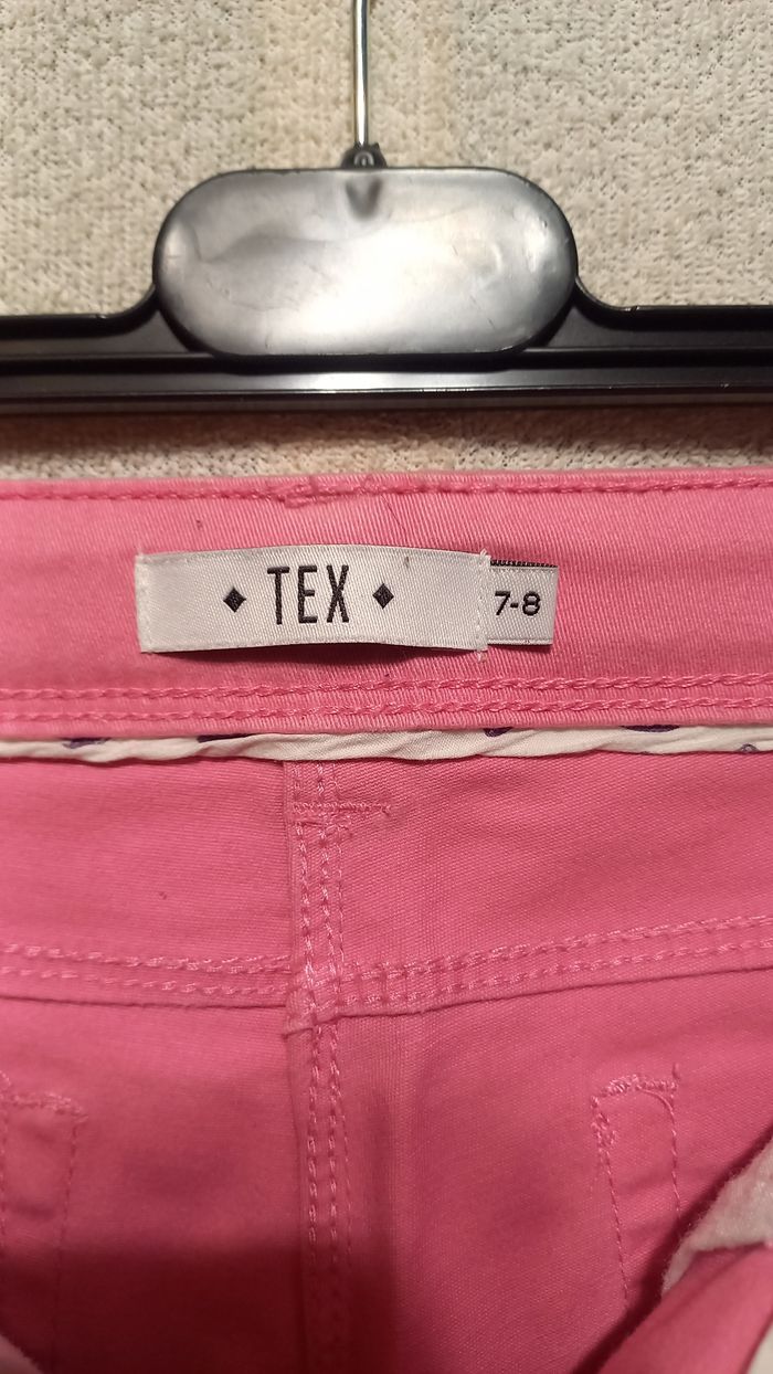 Pantalon fille Age 7/8 ans Marque tex Couleur rose Réglable à la taille avec élastiques Bouton crochet facile à mettre et enlever Bon état Envoi possible