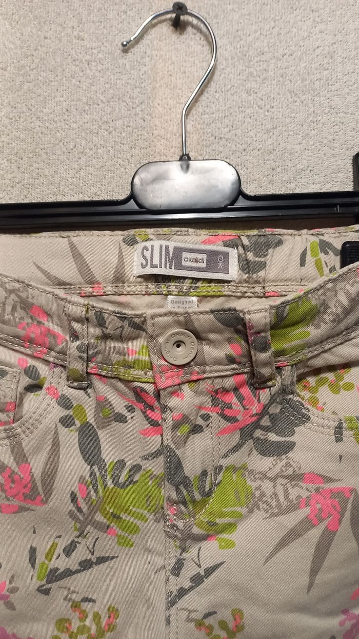Pantalon fille slim Age 7 ans Marque okaidi Réglable à la taille avec élastiques Bouton pression Bon état Envoi possible