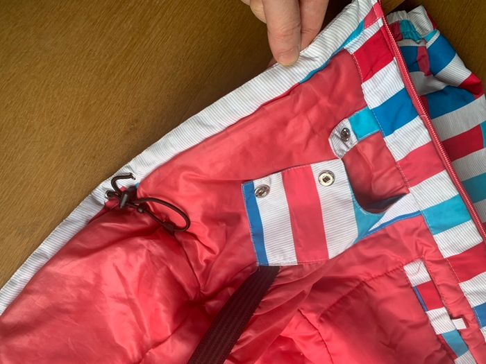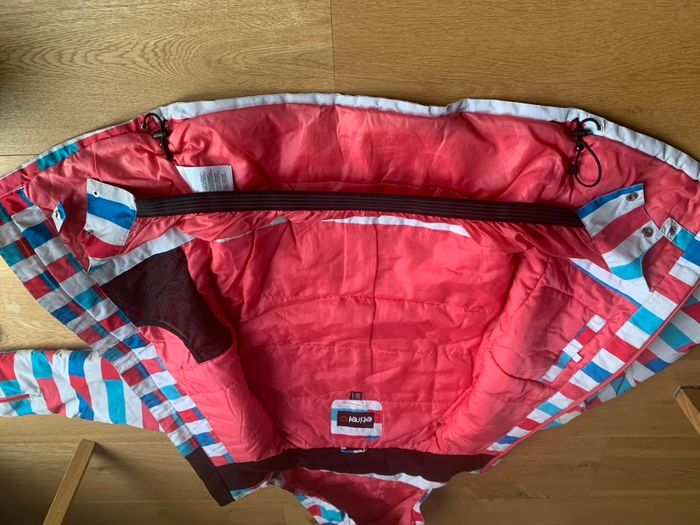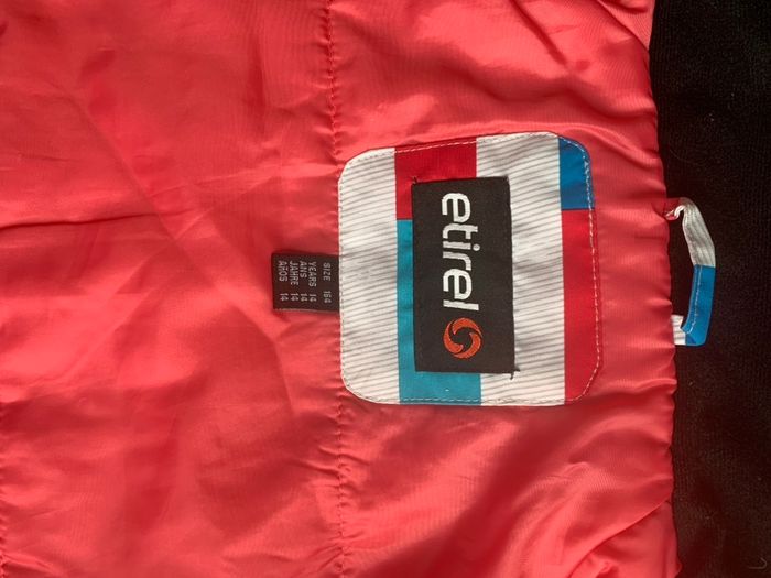 Avec jupe pare-neige En très bon état hormis petite trace d’usure sur la poche (voir photos). Parfait avec le pantalon blanc 14 ans également en vente à petit prix