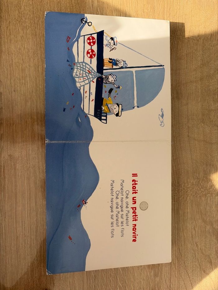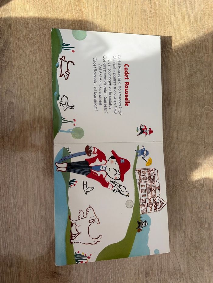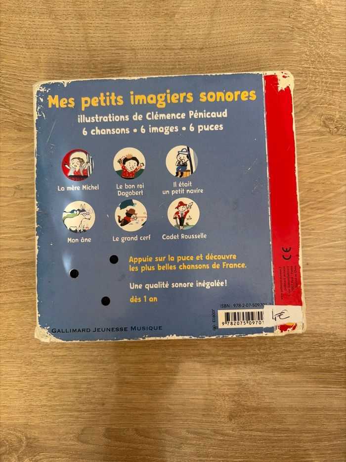 En bon état (toutes les puces sonore fonctionnent parfaitement). Vendu avec les piles neuve. Appuyez sur la puce et découvrez les plus belles chansons de France : - La mère Michel - Le bon roi Dagobert - Il était un petit navire - Mon âne - Le grand cerf - Cadet Rousselle 6 chansons, 6 images, 6 puces. Une qualité sonore inégalée ! Maison non fumeur et personne très soigneuse.