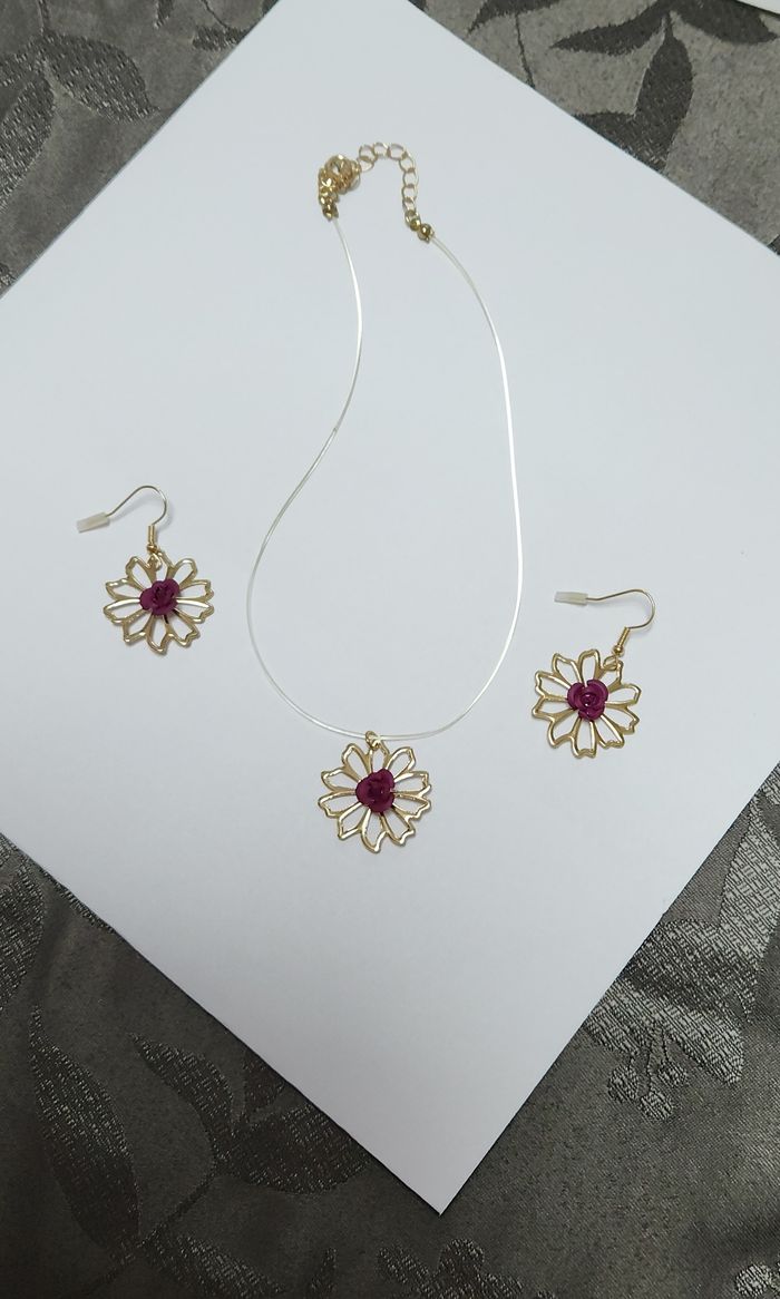 Ensemble collier, boucles d'oreilles fleurs neuf  - photo numéro 2