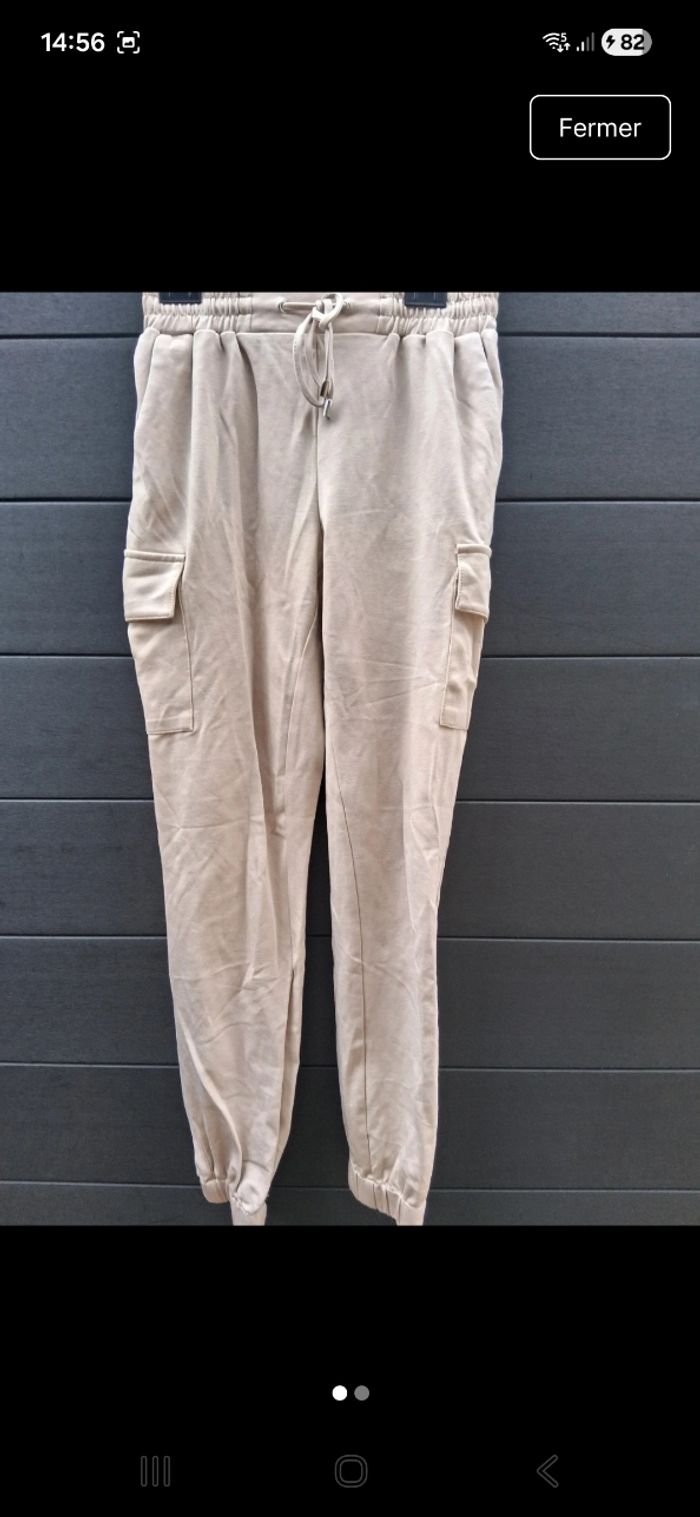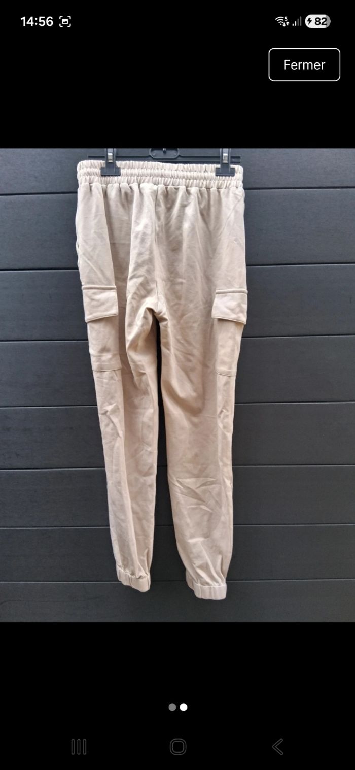 Pantalon cargo femme avec deux poches et cordon à la taille 65% viscose 31%polyester et 4% elastane