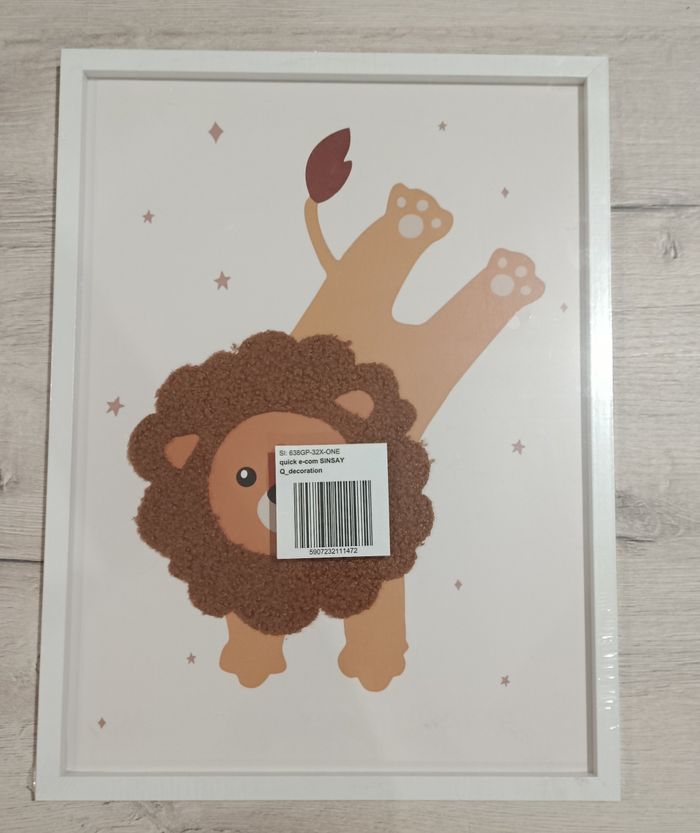Tableau décoratif 40x30 Lion Emballé sous film plastique. Information: J'ai fait le choix de ne pas enlever l'étiquette du fabriquant afin de ne pas prendre le risque de dégrader l'emballage.