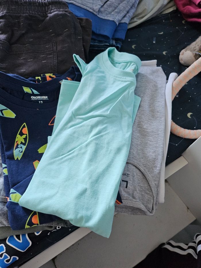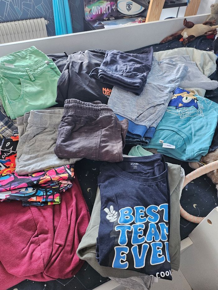 Environ 38 pièces comprenant short, pantacourt, chemises, pantalon, tee shirt MC, débardeur, vestes zip, pull léger Saison printemps ete Certains sont neuf d'autres portés. Différentes marques orchestra, okaidi, kiabi