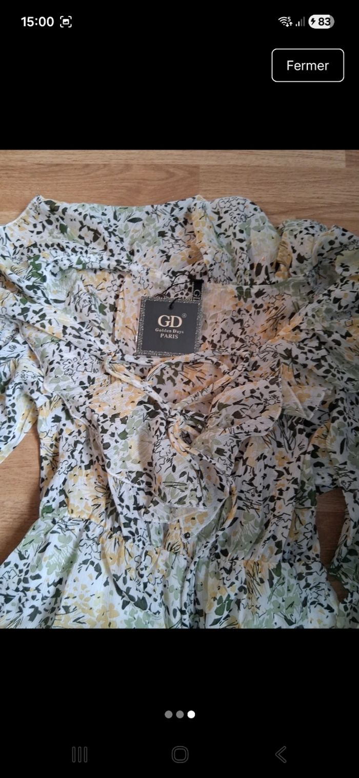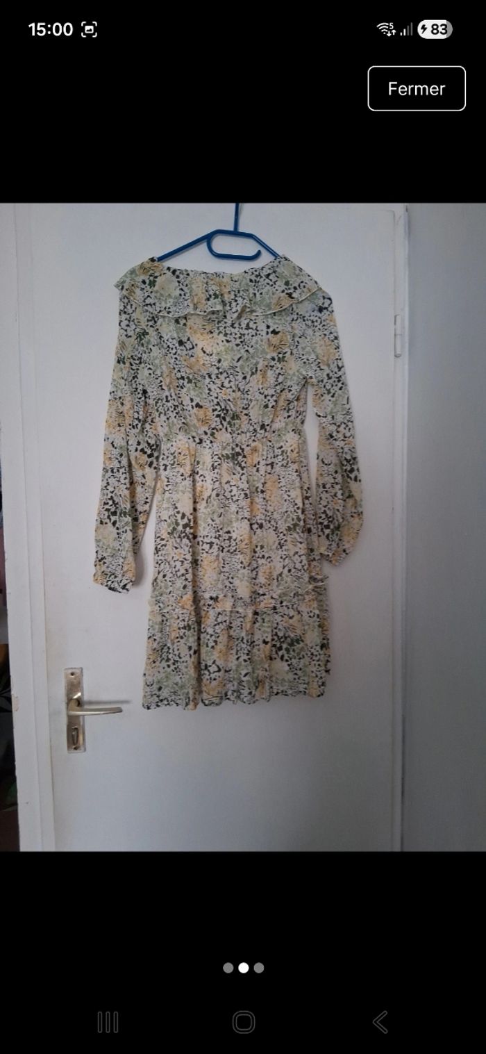 Robe patineuse légère fluide à fleurs avec jupon taille S 100% polyester