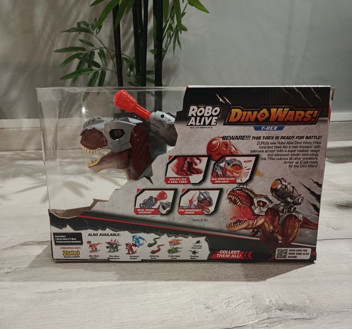 Robo Alive T-Rex, neuf sous emballage. Informations notées sur l'emballage: - Marche comme un véritable T-Rex ! - Action de morsure réelle avec lumière ! - Arme intégrée ( fictive bien sûr !) - Armure épique amovible Inclus dans le contenu: - 1 Dino Wars T-Rex - 1 notice