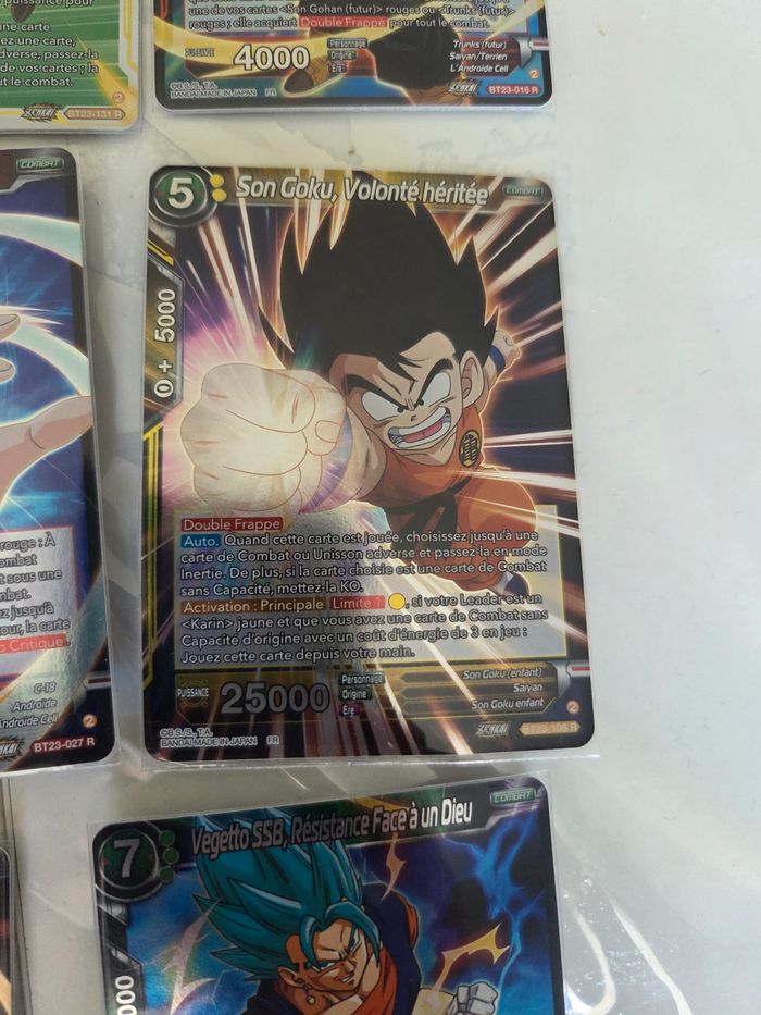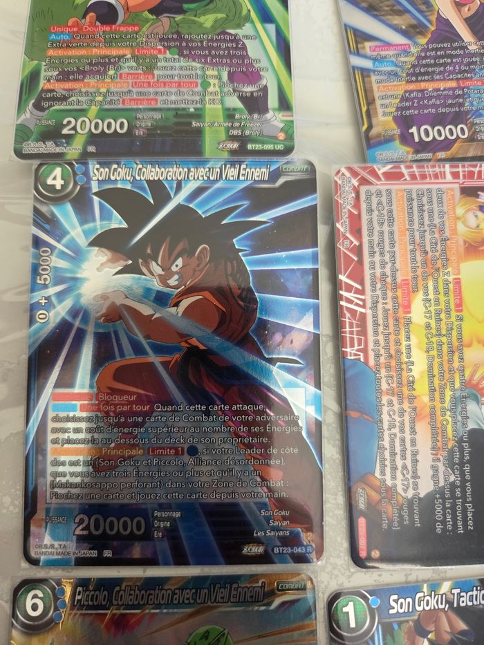 Vends lot de 12 cartes dragon ball bt23 perfect combination dont 1 ST et 1 unco sous slive