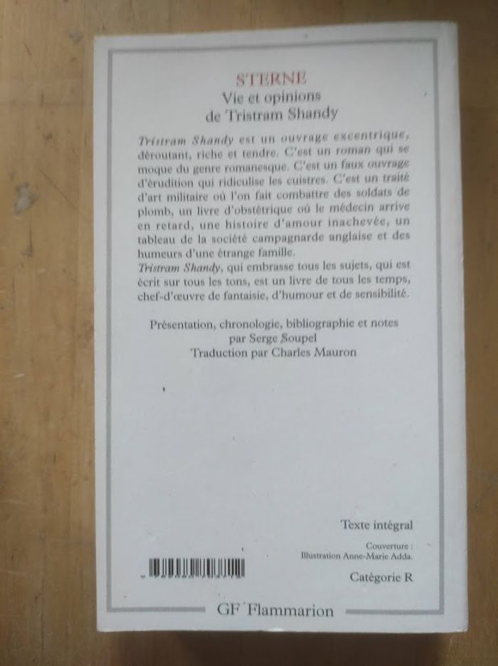 Vie et opinions de Tristram Shandy Sterne GF Flammarion 1998