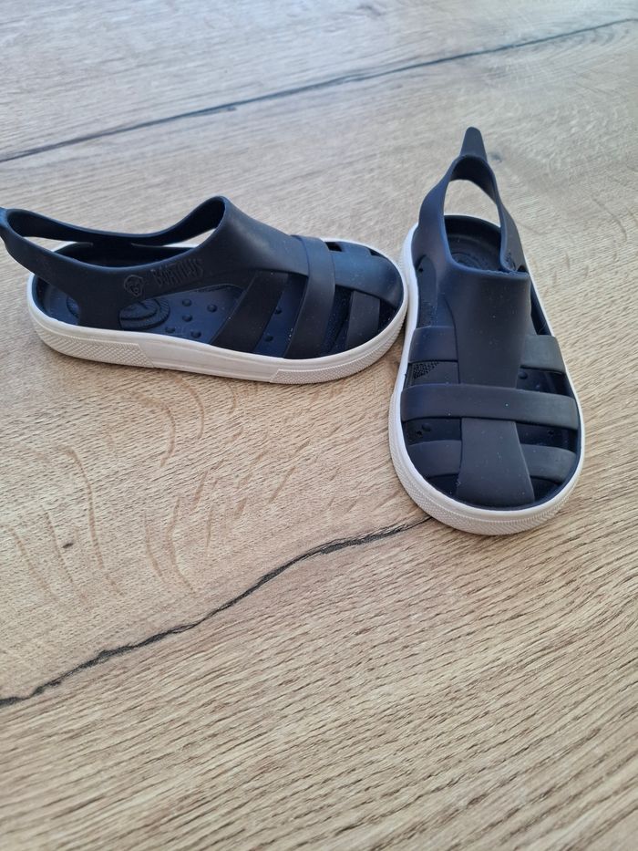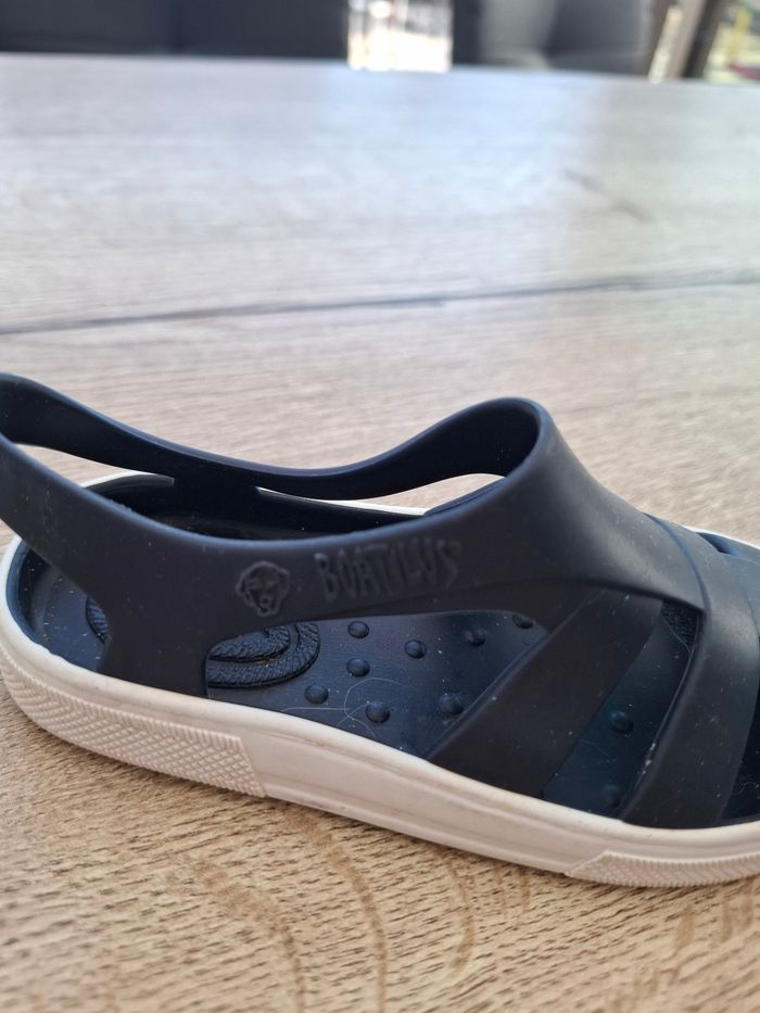 De la marque boatilus Sandales en plastique souple ( ressemble un peu à du silicone alimentaire) Servi 2 semaines en vacances. Tres confortables Pointure 22/23