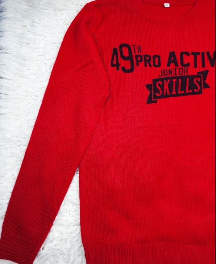 Pull en tricot rouge et noir Garçon taille 11/12 ans marque La Halle ✴️ Composition = 100 % acrylique ✴️ Couleurs => Rouge intense et noir ✴️ Col rond ✴️ Poignets et bas côtelé