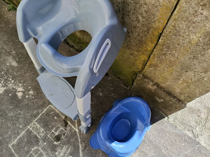 Bonjour, Vends réducteur de wc 10 euros le gris et 5 euros le pot bleu très bon état.