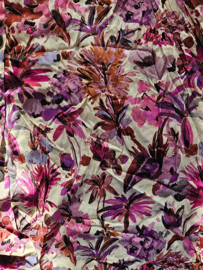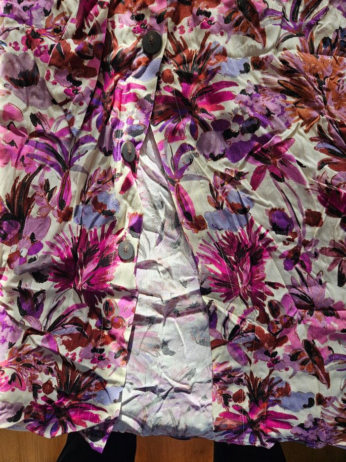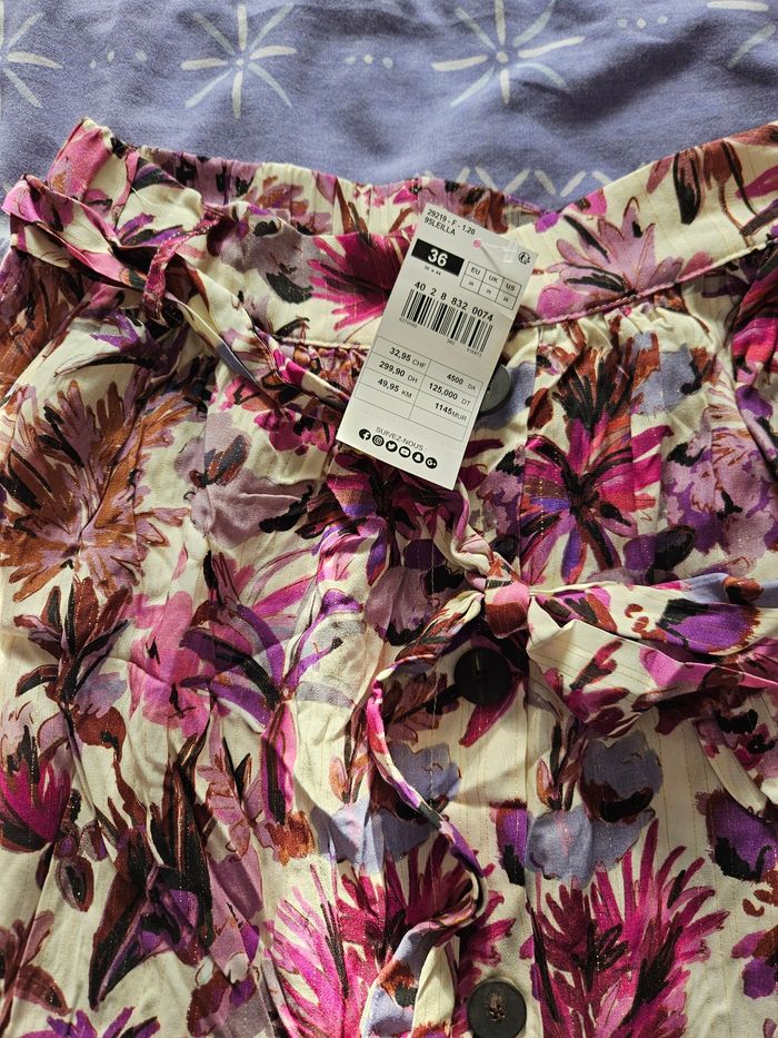 Jupe gémo neuf avec étiquette motif floral fond blanc, ton rose liseré doré