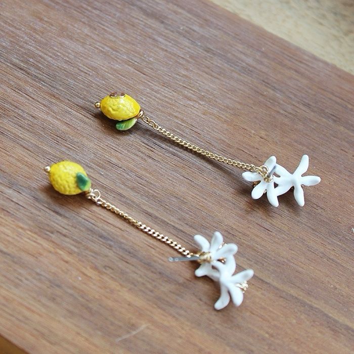 Boucles d’oreilles tiges citron et fleurs  - photo numéro 4