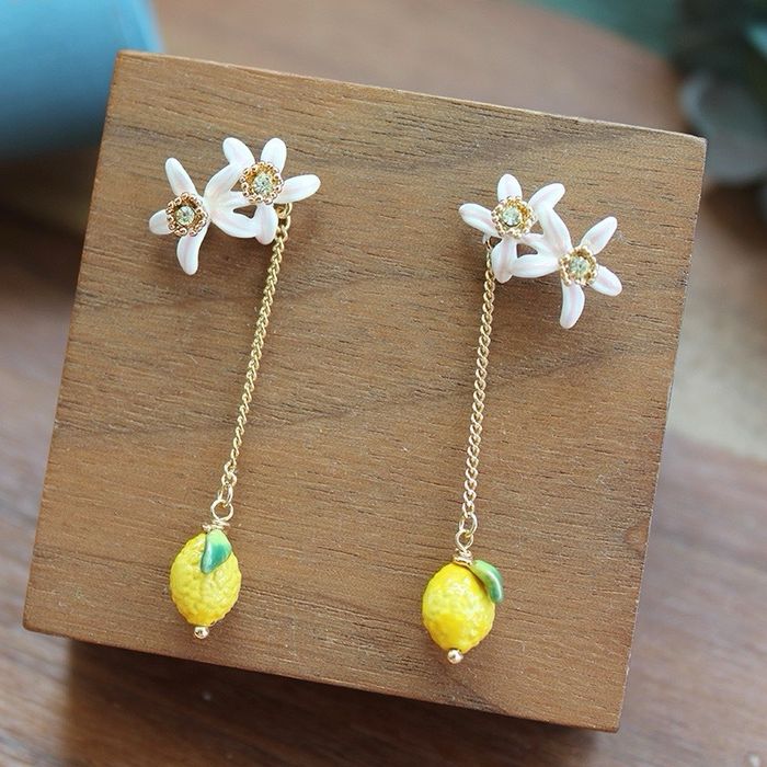 Boucles d’oreilles tiges citron et fleurs  - photo numéro 1