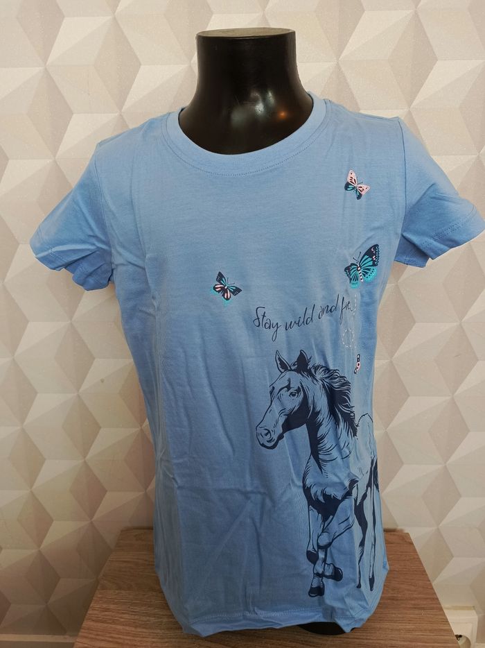 Tee-shirt thème équitation, marque Crane, taille 11 ans (146 cm), excellent état, jamais porté