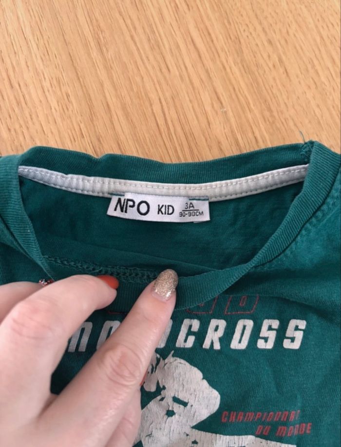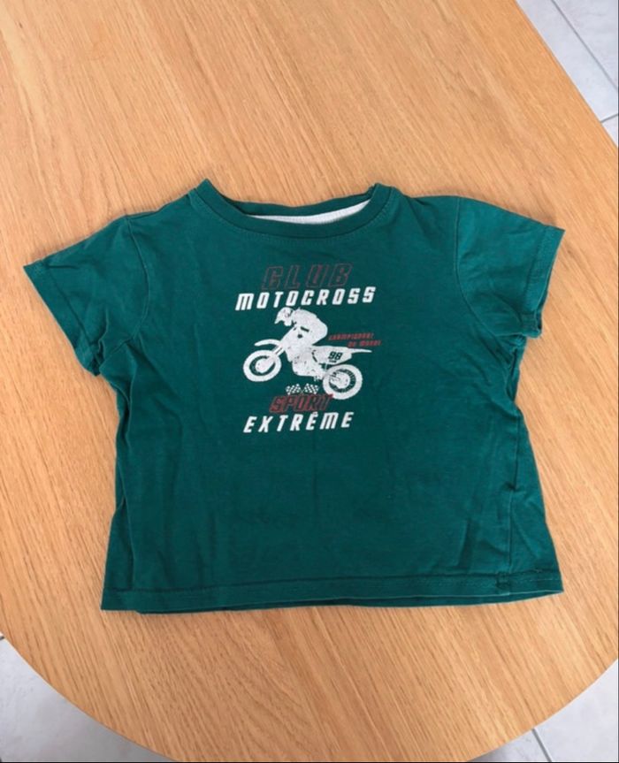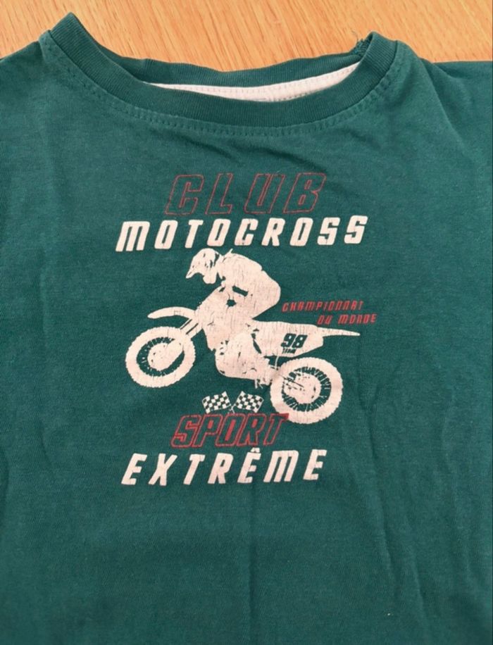 T-shirt vert et blanc motorcross sport extrême En très bon état 90 cm - 3 ans NPO