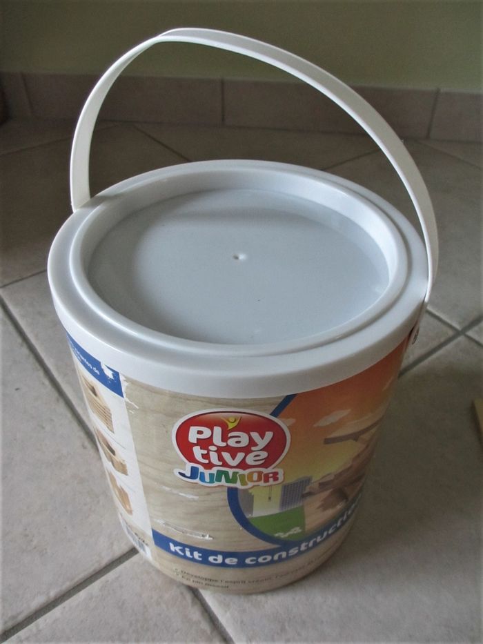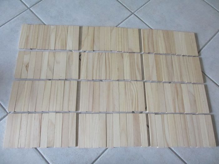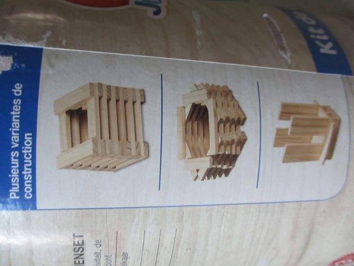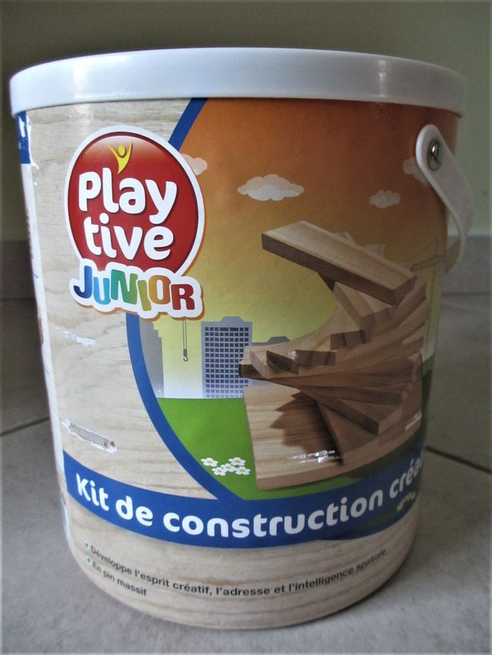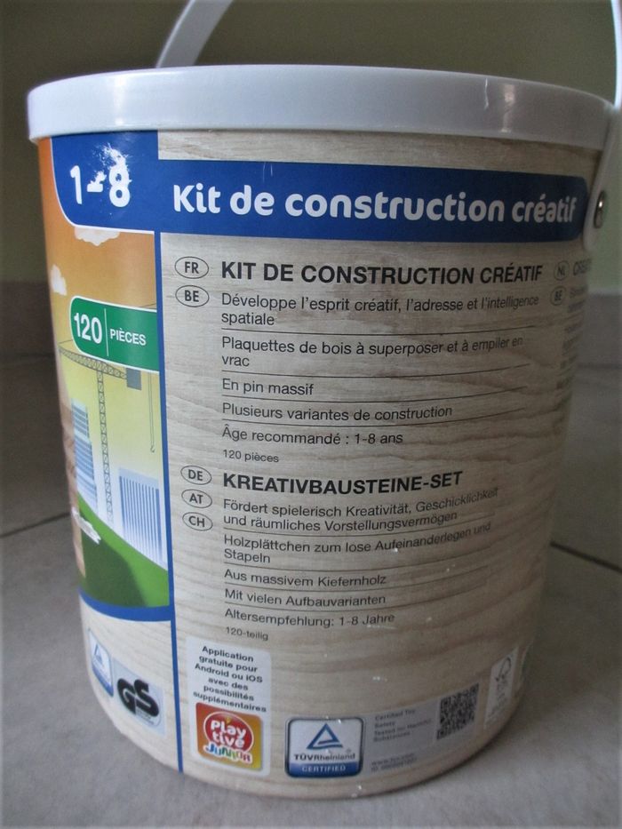 Kit de construction créatif (120 plaquettes) en bois massif Playtive Dimensions des plaquettes : 11,9 x 2,5 x 0,8 cm. Très bon état.
