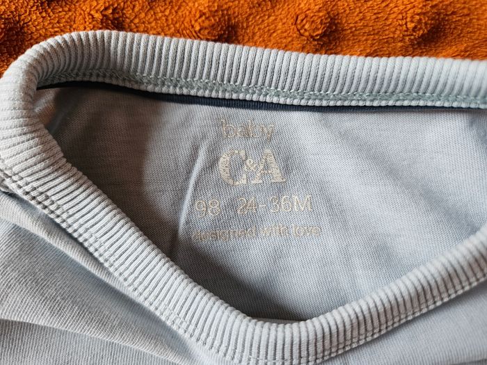 T-shirt manches courtes (MC) bleu clair C&A, 3ans (98cm) Très bon, état sans trou ni tâche. D'autres vêtements sont disponibles dans mon dressing en taille 3ans