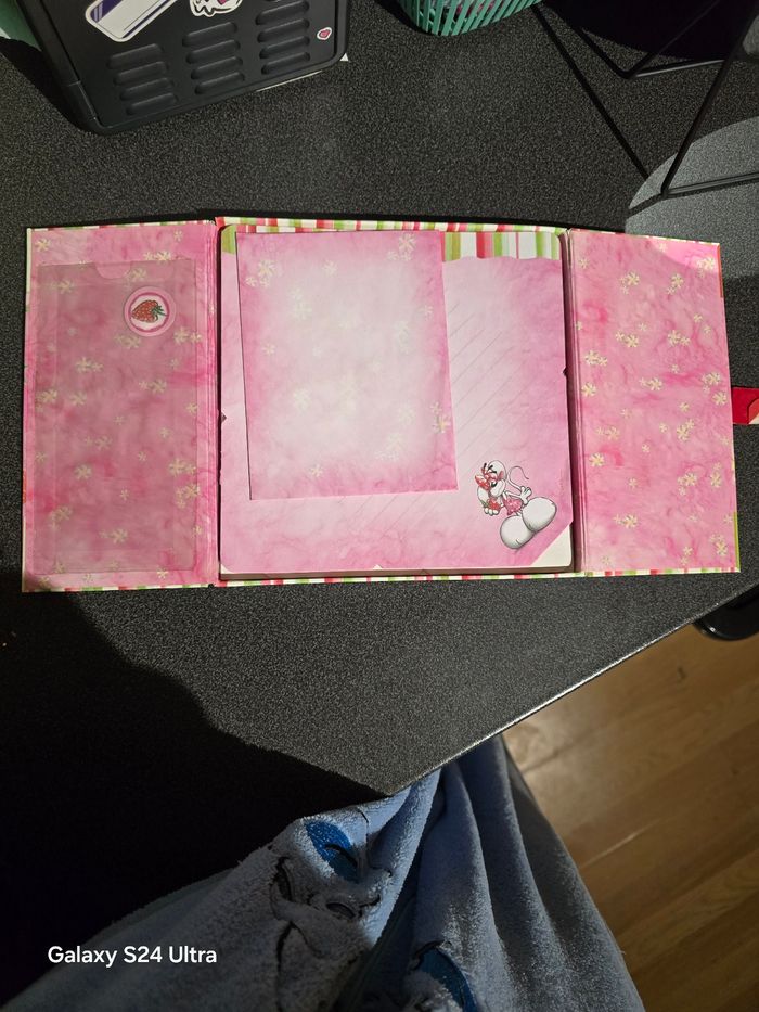 Bonjour, Je vend cette PAL diddlina en très bon état sauf les angles qui sont légèrement abîmés par le temps. La boite est aimanté pour la fermeture. Il reste environ une quinzaine de feuille avec une enveloppe. N'hésitez pas à me contacter pour plus de renseignements. Cordialement