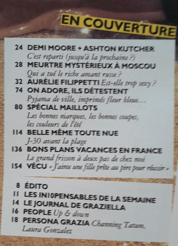162 pages 29x23cm spécial demi et ashton 2 pages, rihanna 2 pages, people daniel angeli 5 pages, mode plage ..