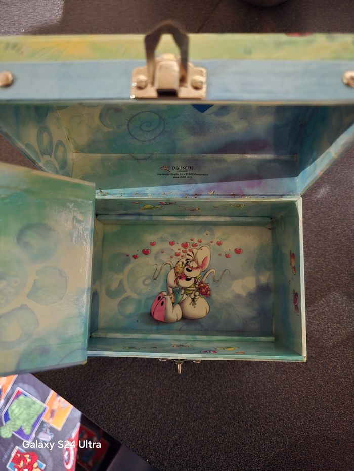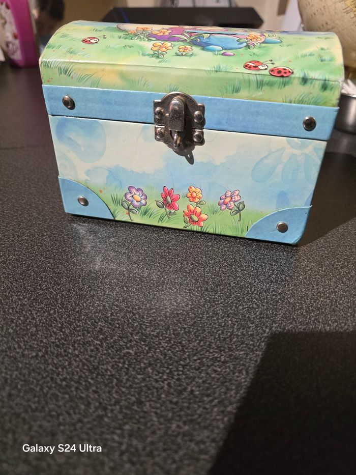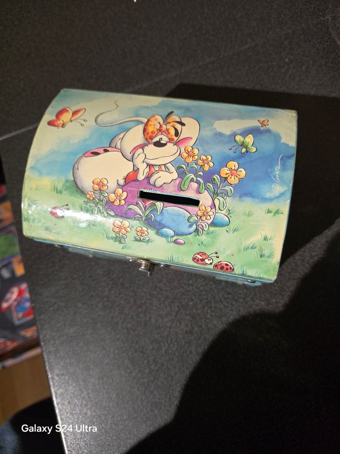 Bonjour, Je vend cette jolie tirelire bleu diddl en bois. Elle est en très bon état, très peu servie. N'hésitez pas à me contacter pour plus de renseignements et plusieurs articles sont disponibles dans mon dressing.