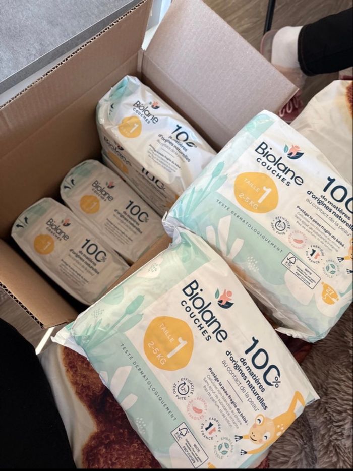 Je vends un carton de couches biolane il y’a 162 couches aux total, ils sont neufs