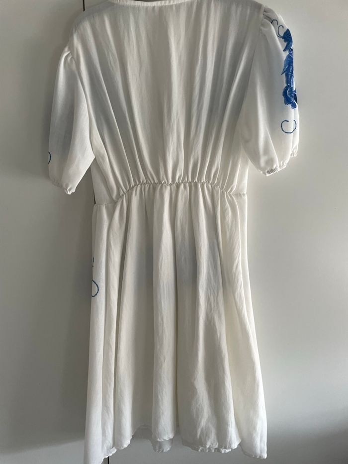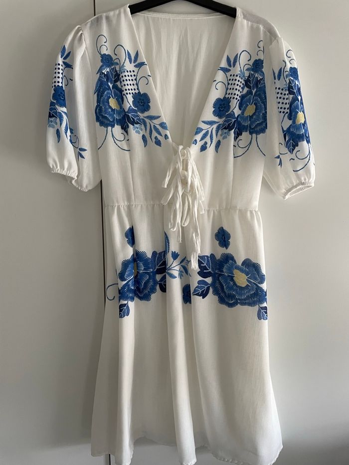 Petite robe banche et fleurs bleues Charmante et agréable Taille 36/38 Envoi rapide et soigné