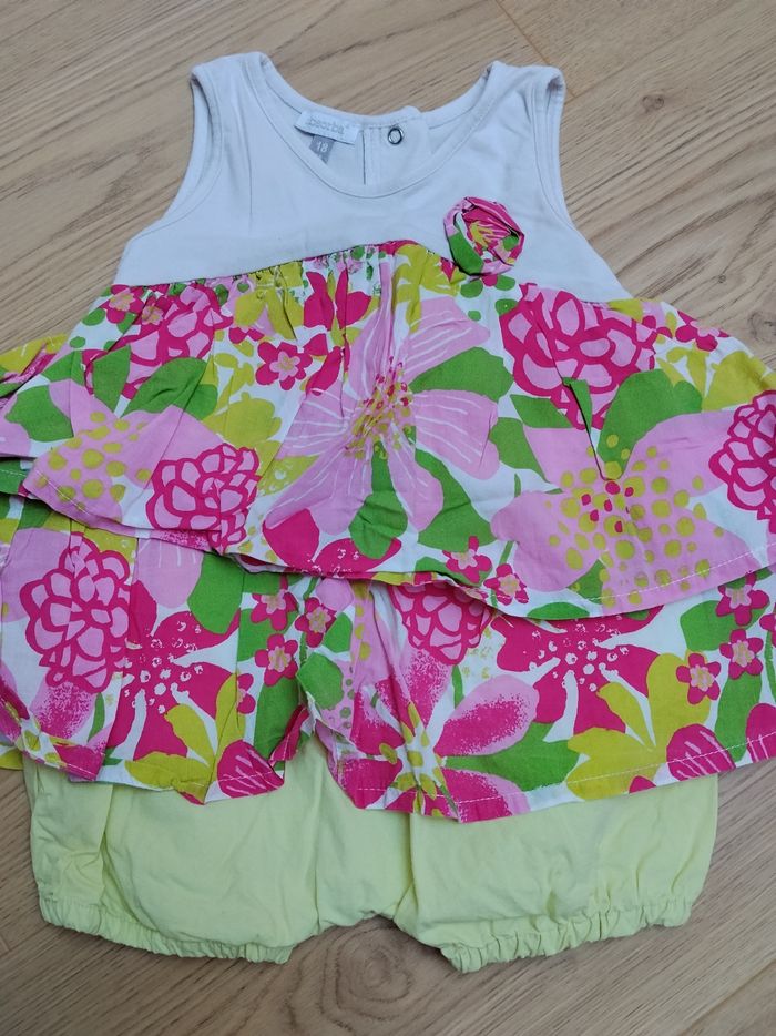 Lot de 2 combishort fleuries Taille 18 mois Marque inconnue et Absorba Très bon état Maison non fumeur