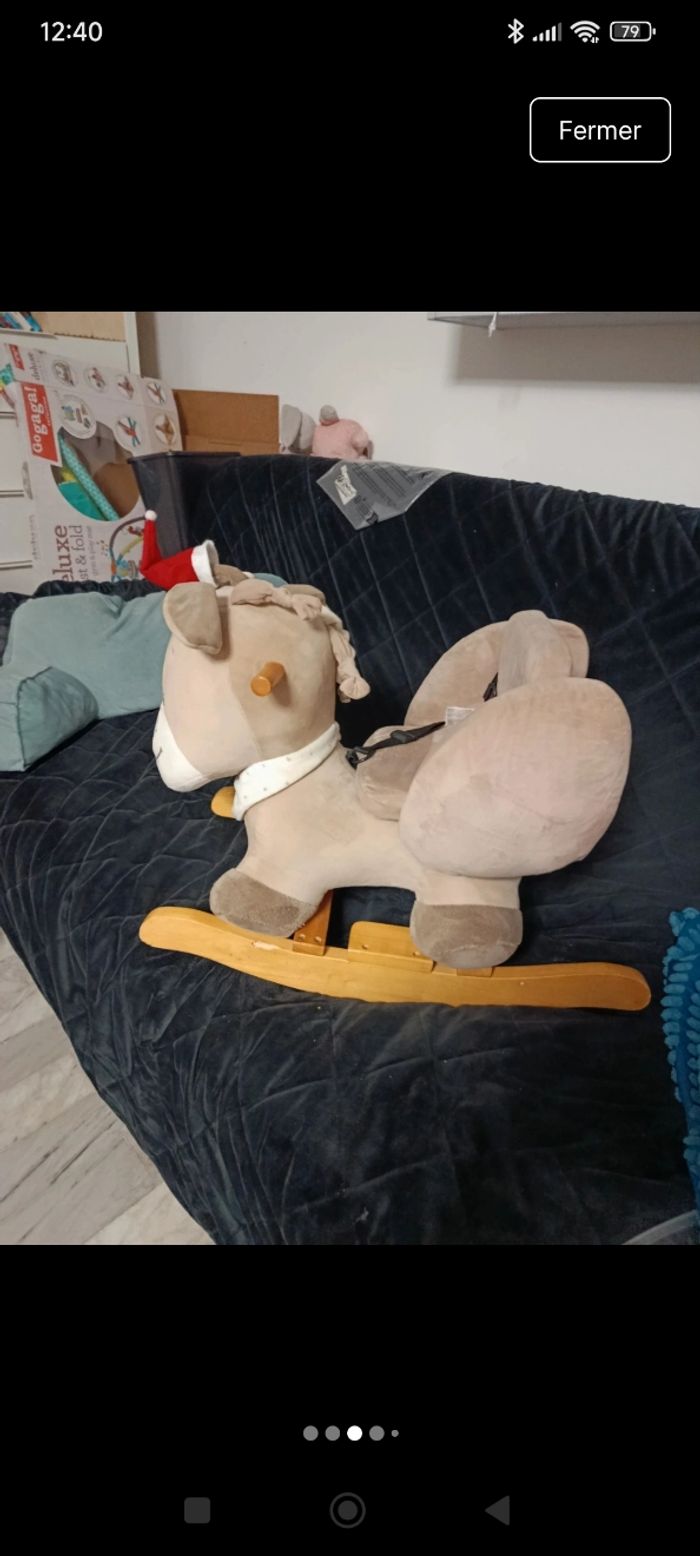 Très beau âne a bascule Nattou rose et marron Un minuscule bout de bois manque sur le bois mais ne change rien tout est propre